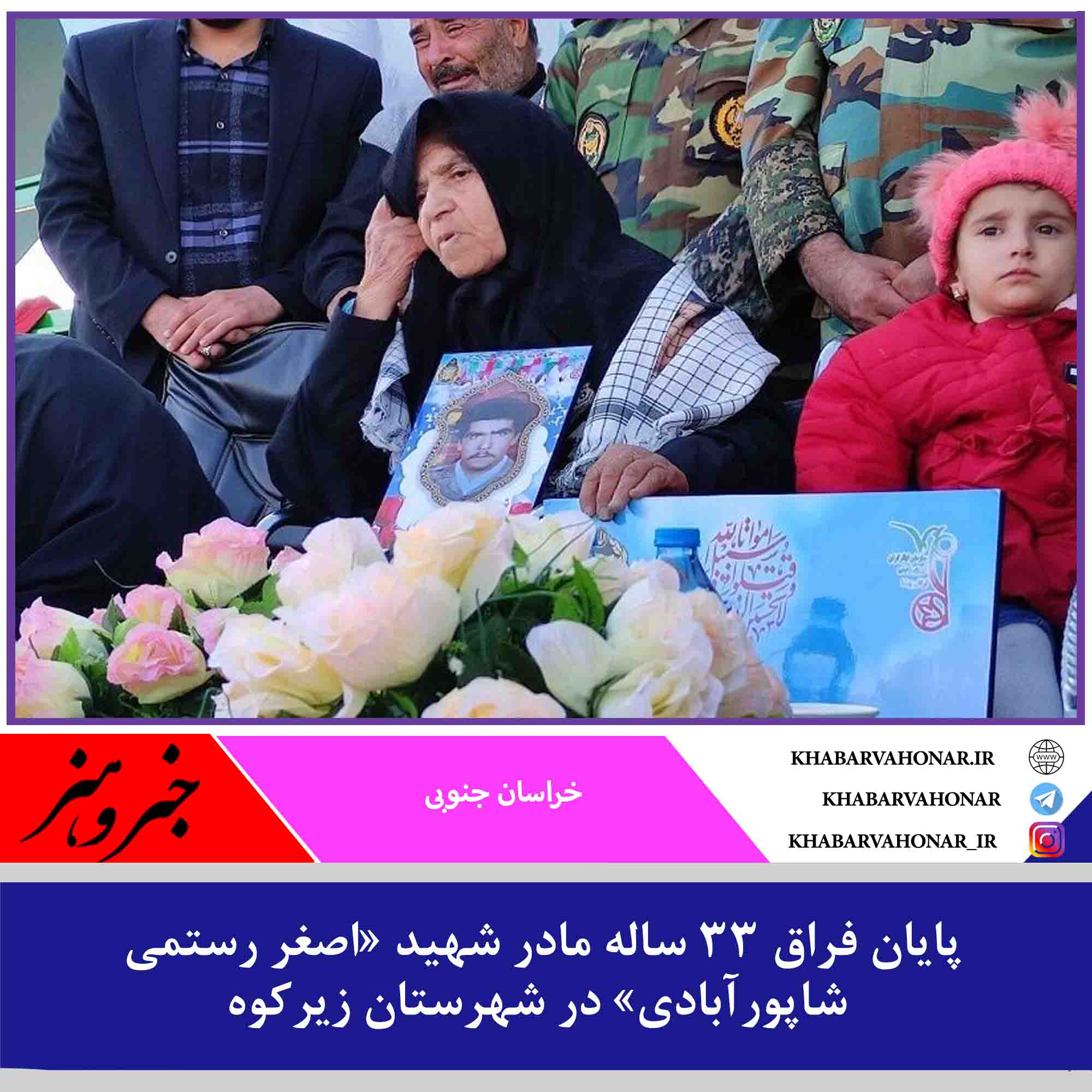 شهرستان زیرکوه امروز میزبان خانواده شهید «اصغر رستمی شاپورآبادی» بود و مادر شهید پس از ۳۳ سال فراق، مزار فرزندش در شهر مرزی حاجیآباد را به آغوش کشید.