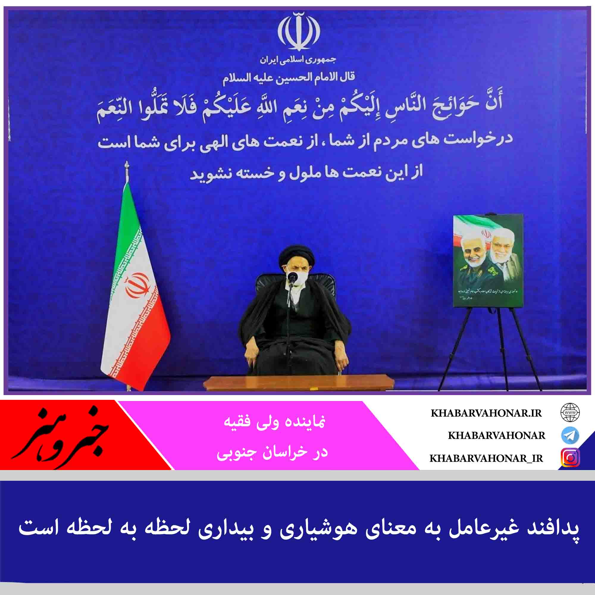 نماینده ولی فقیه در خراسان جنوبی و امام جمعه بیرجند گفت: پدافند غیرعامل به معنای هوشیاری و بیداری لحظه به لحظه است و این عرصه جهاد فی سبیل الله محسوب میشود.
