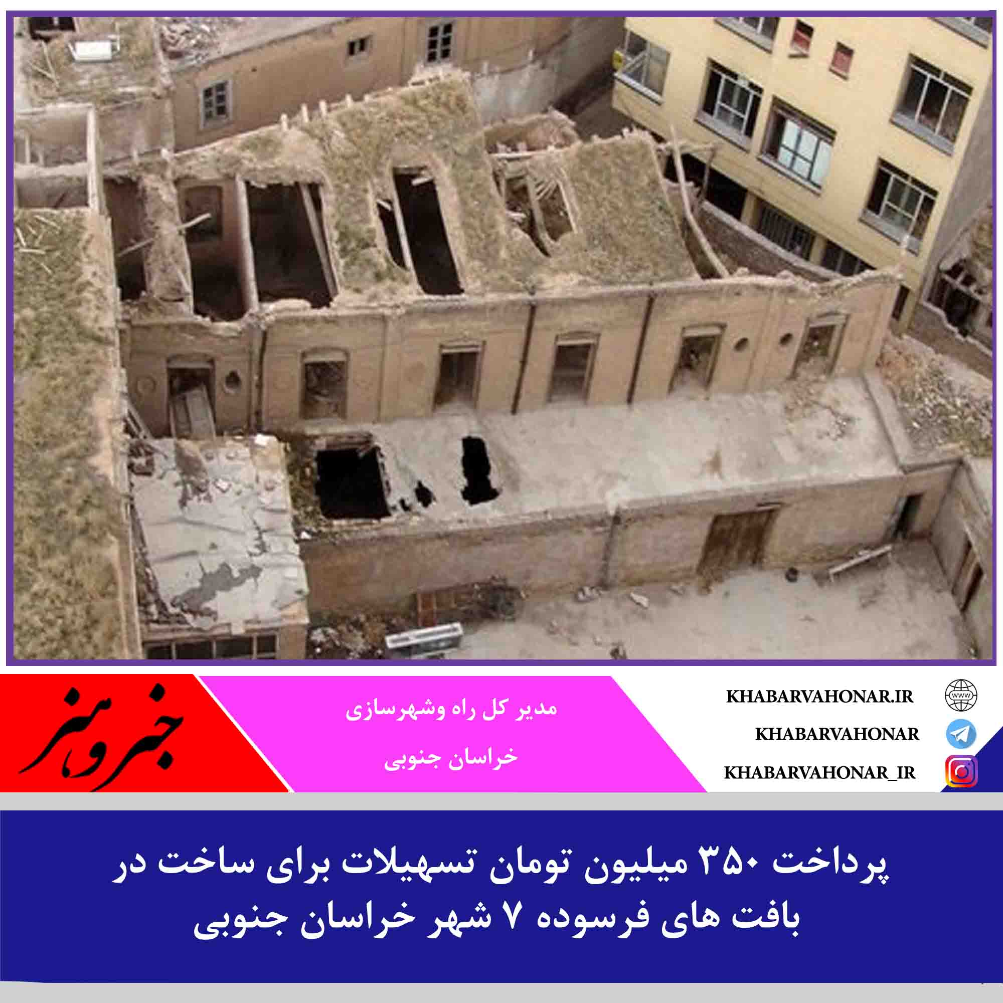 ۳۵۰ میلیون تومان تسهیلات به بافت های فرسوده ۷ شهر خراسان جنوبی پرداخت می شود.