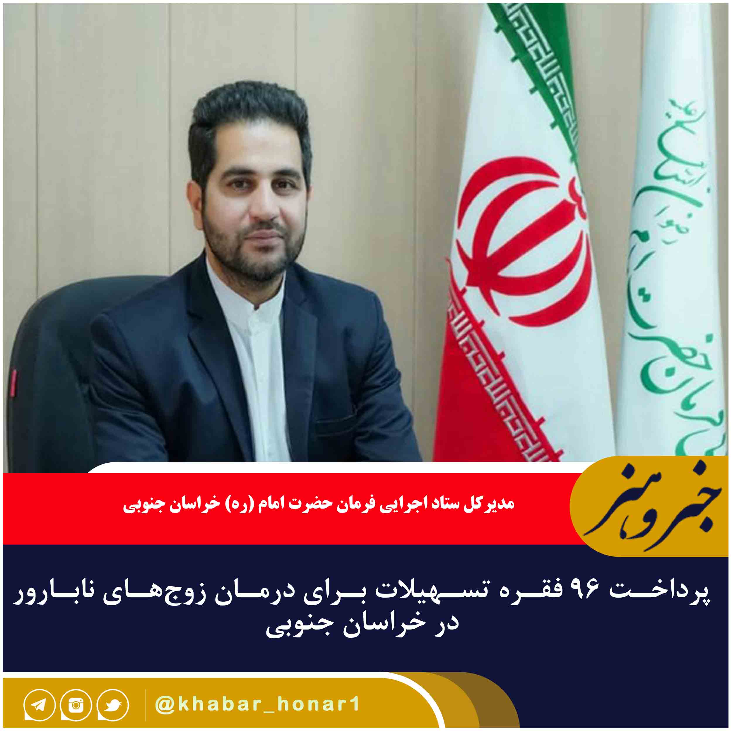 مدیرکل ستاد اجرایی فرمان حضرت امام (ره) خراسان جنوبی گفت: ۹۶ فقره تسهیلات قرض الحسنه بانکی برای درمان زوجهای نابارور در خراسان جنوبی پرداخت شد.