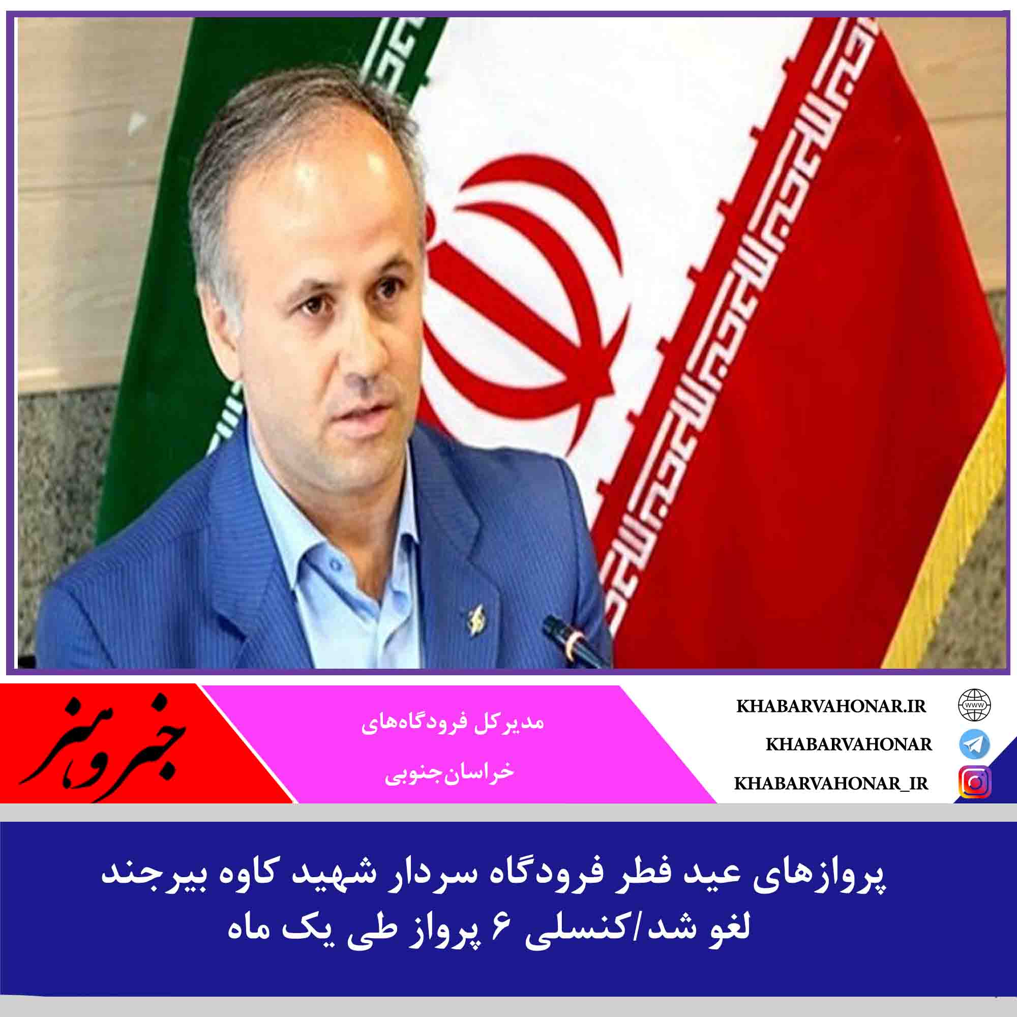 عظیم طهماسبی اظهار کرد: متأسفانه پروازهای بیرجند به تهران و تهران به بیرجند در روزهای تعطیلات عید فطر ۱۲ و ۱۳ اردیبهشت ماه یکی از شرکتهای هواپیمایی کنسل شده است.