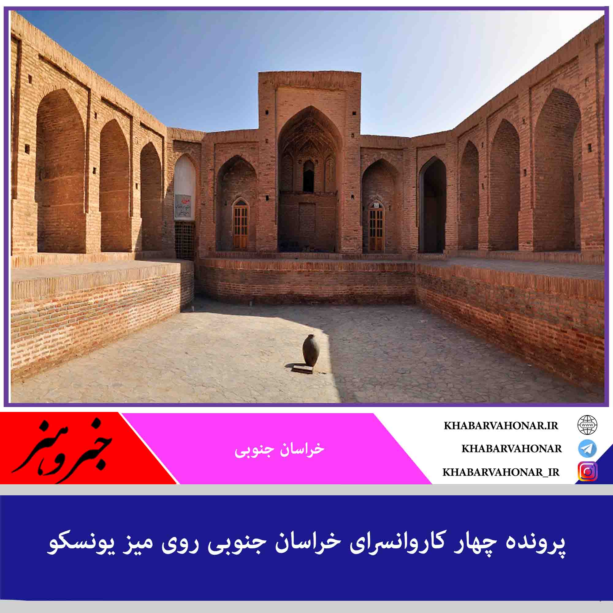 ۲۳ کاروانسرای خراسان جنوبی در فهرست میراث ملی به ثبت رسیده و از این تعداد چهار کاروانسرا به همراه آثار دیگر کشور در دست بررسی سازمان یونسکو برای ثبت جهانی است تا این استان پنج اثر جهانی داشته باشد.