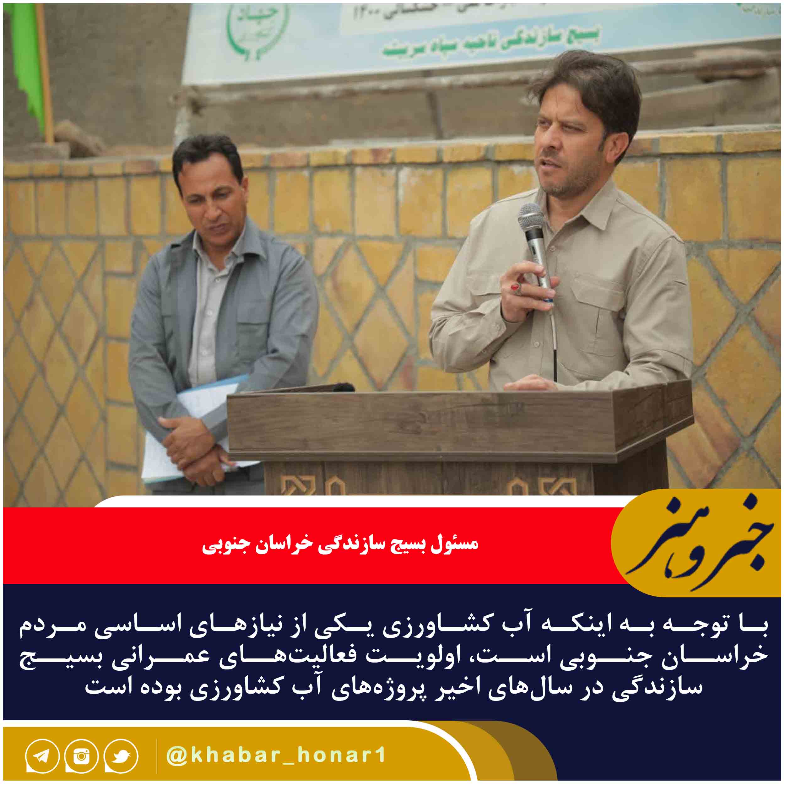 مسئول بسیج سازندگی خراسان جنوبی گفت: با توجه به اینکه آب کشاورزی یکی از نیازهای اساسی مردم خراسان جنوبی است، اولویت فعالیتهای عمرانی بسیج سازندگی در سالهای اخیر پروژههای آب کشاورزی بوده است.