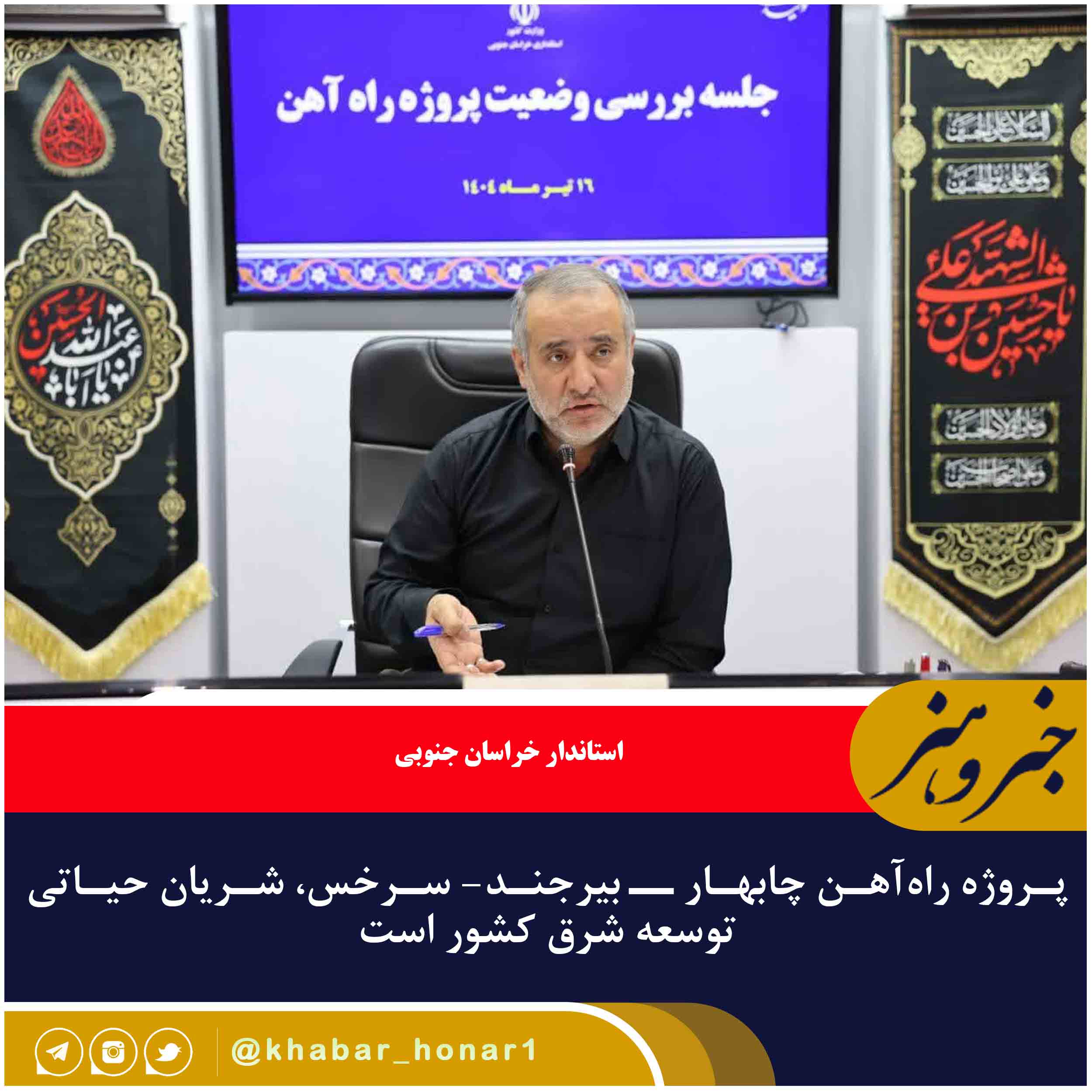 🔹استاندار خراسان جنوبی با اشاره به اهمیت راهبردی پروژه راه‌آهن چابهار ـ بیرجند- سرخس، این طرح را بزرگترین و حیاتی‌ ترین پروژه عمرانی و اقتصادی شرق کشور برشمرد.