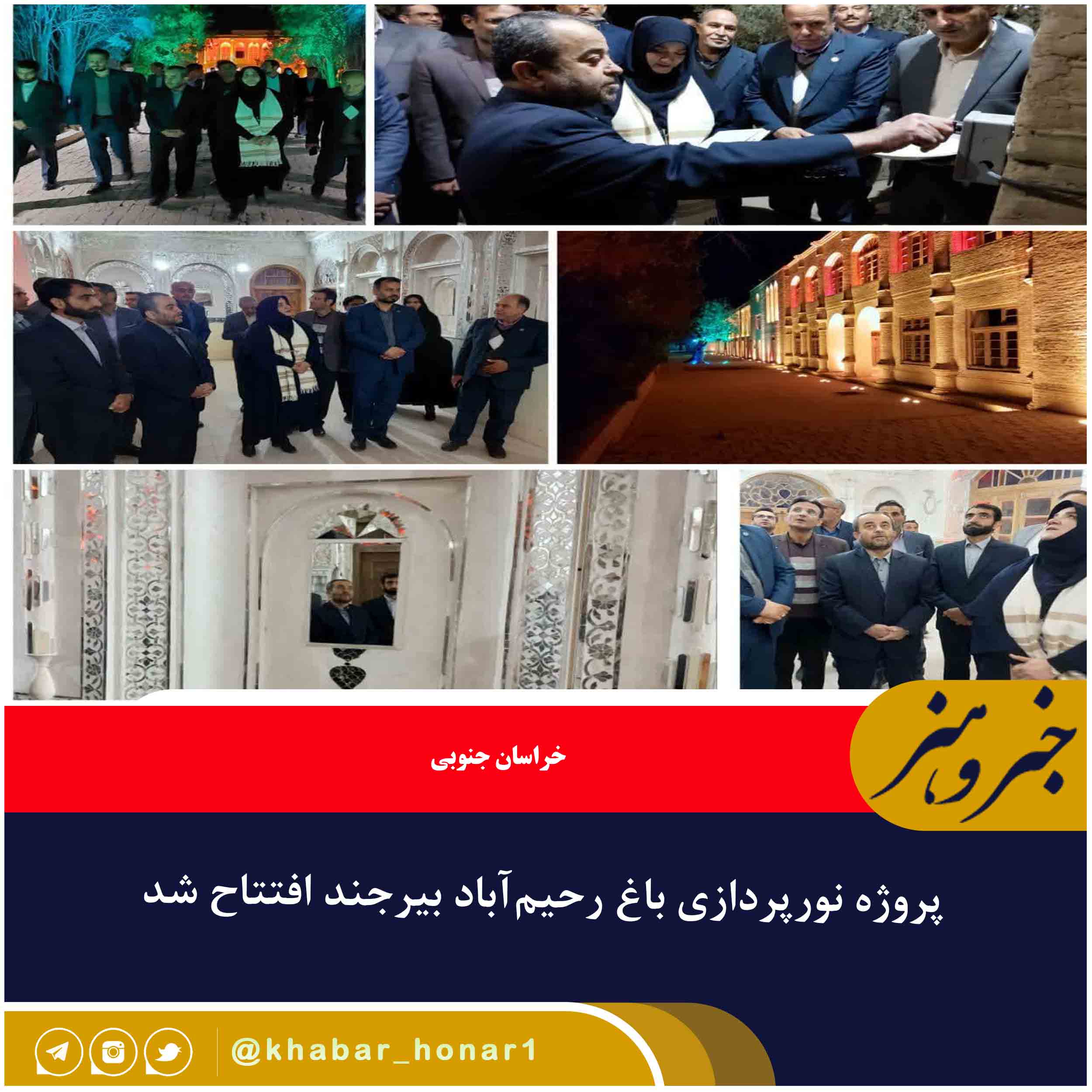 پروژه نورپردازی باغ رحیمآباد بیرجند باحضور استاندار خراسان جنوبی، معاون صنایعدستی و هنرهای سنتی کشور، مدیرکل میراثفرهنگی، گردشگری و صنایعدستی خراسان جنوبی و جمعی از مدیران و مسئولان استانی عصر امروز پنجشنبه ۲ آذرماه ۱۴۰۲ افتتاح شد.