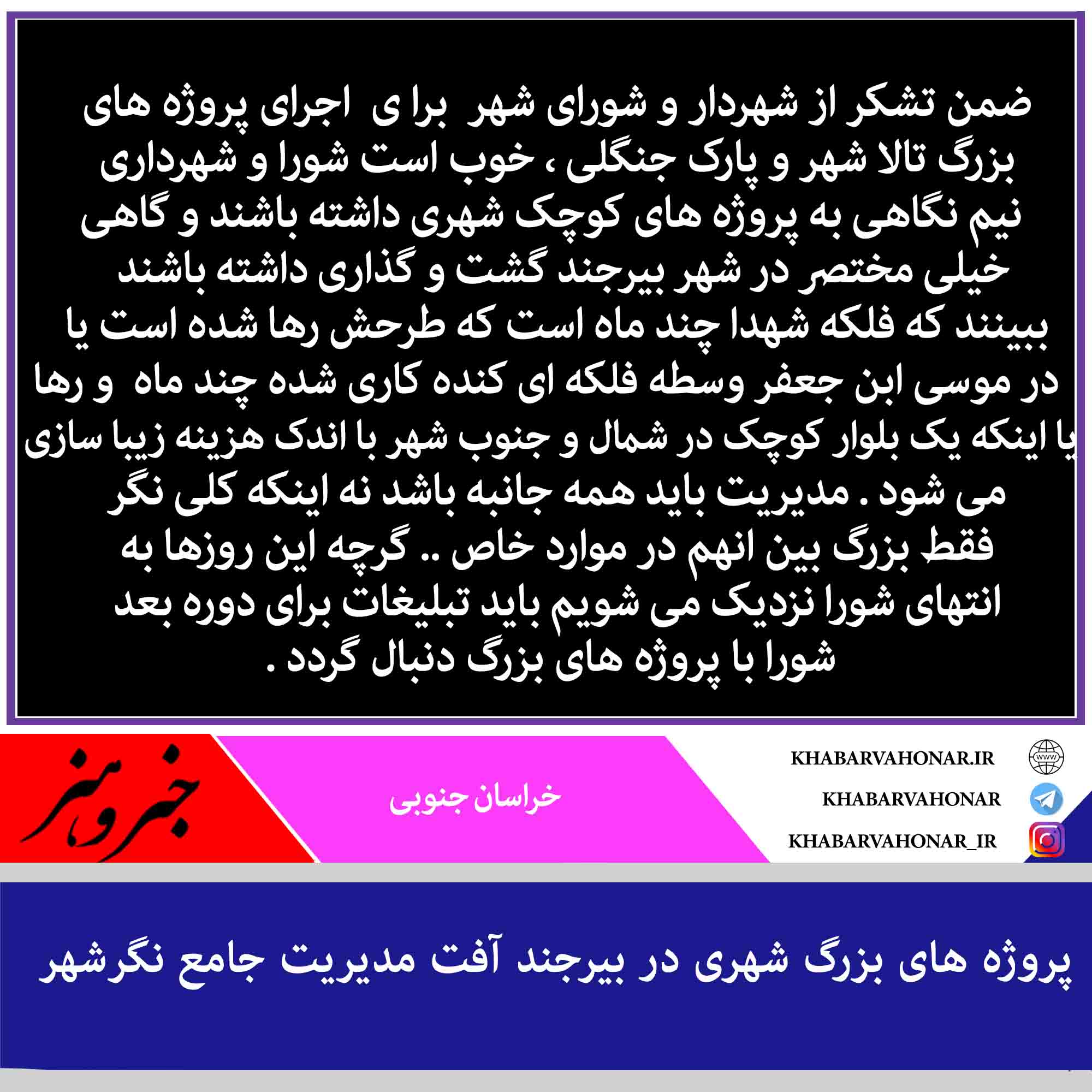 پروژه های بزرگ شهری در بیرجند آفت مدیریت جامع نگرشهر