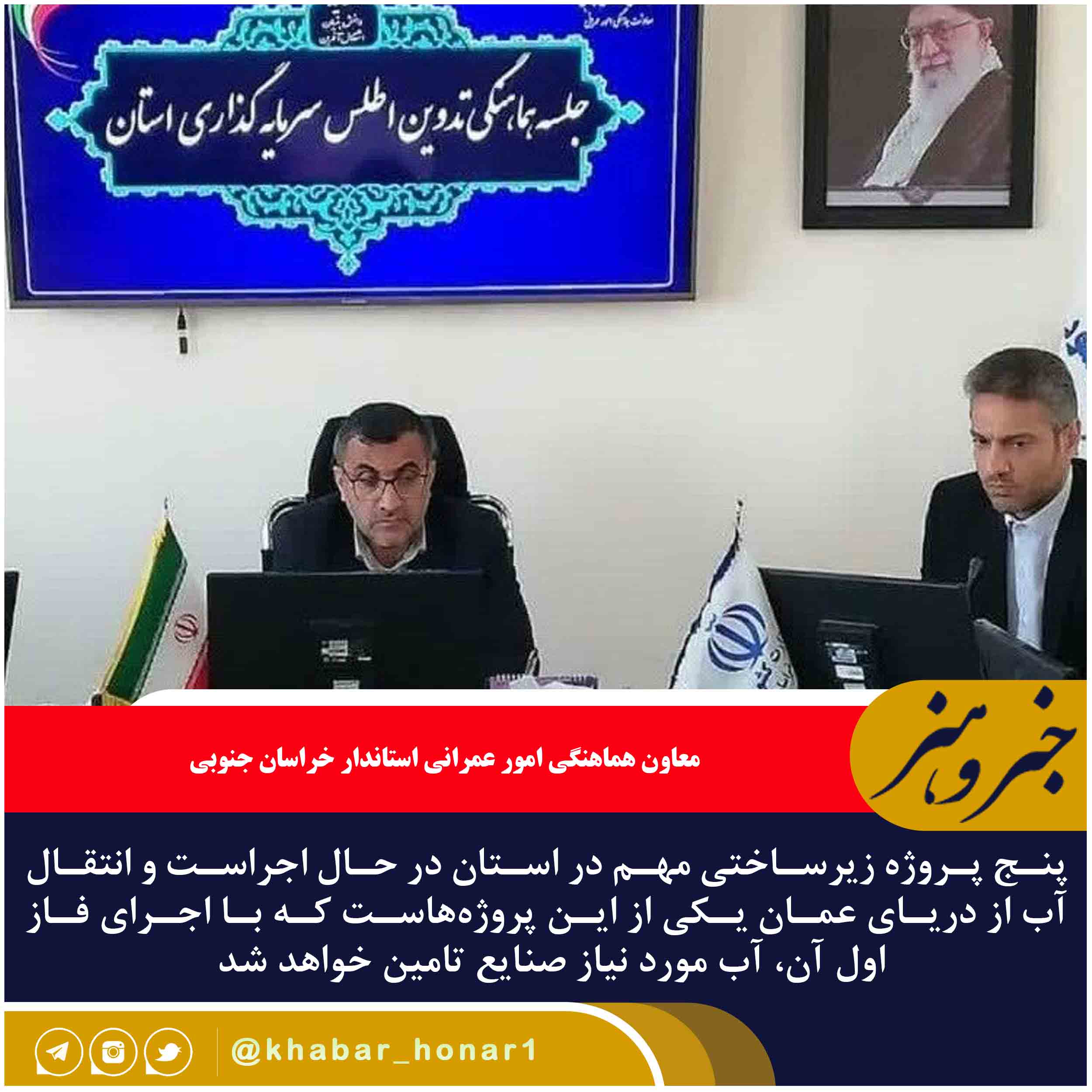 معاون هماهنگی امور عمرانی استاندار خراسان جنوبی گفت: پنج پروژه زیرساختی مهم در استان در حال اجراست و انتقال آب از دریای عمان یکی از این پروژههاست که با اجرای فاز اول آن، آب مورد نیاز صنایع تامین خواهد شد.