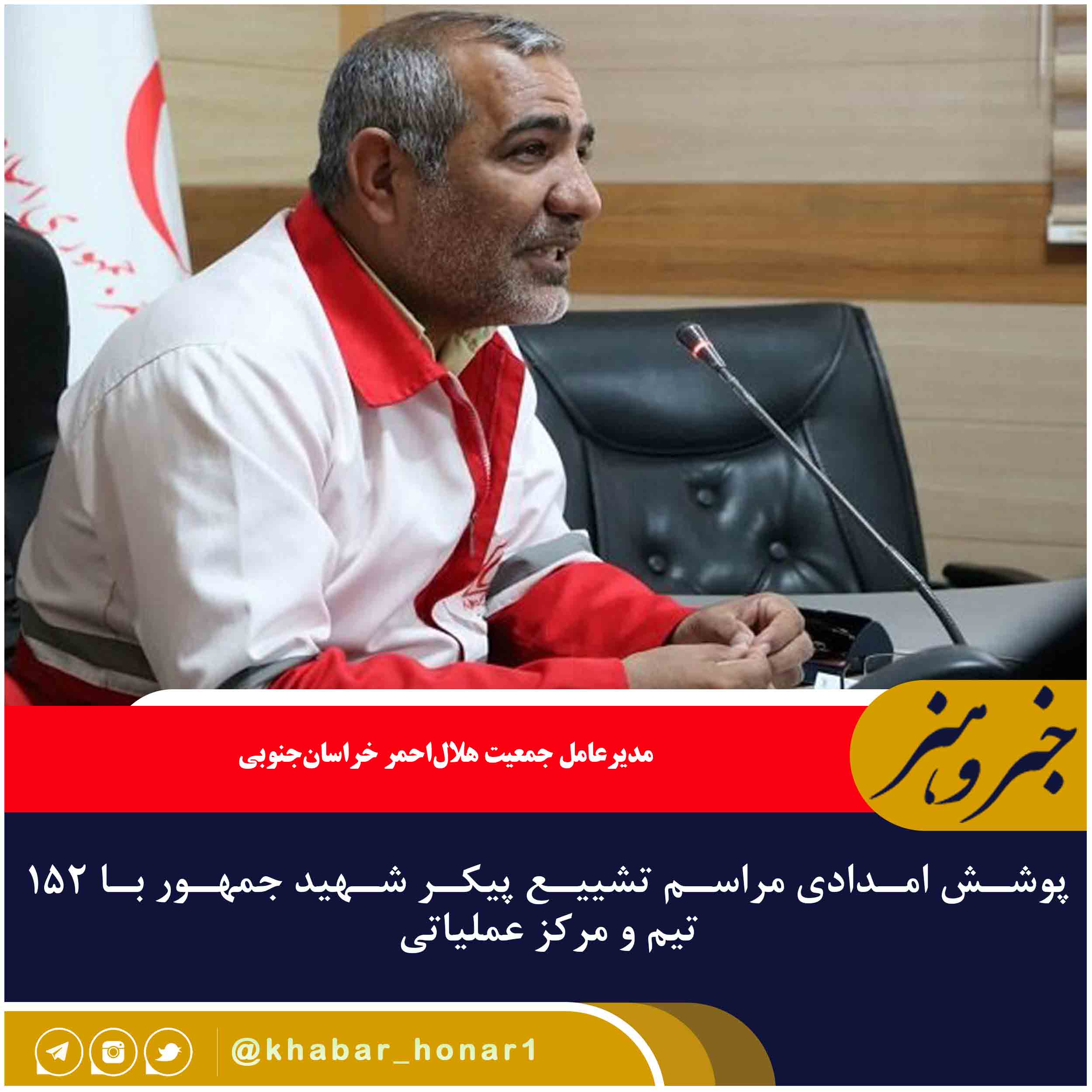 مدیرعامل جمعیت هلالاحمر خراسانجنوبی گفت: ۱۵۲ تیم و مرکز عملیاتی این جمعیت، مراسم تشییع پیکر شهید جمهور آیت الله رئیسی در بیرجند را پوشش امدادی میدهند.