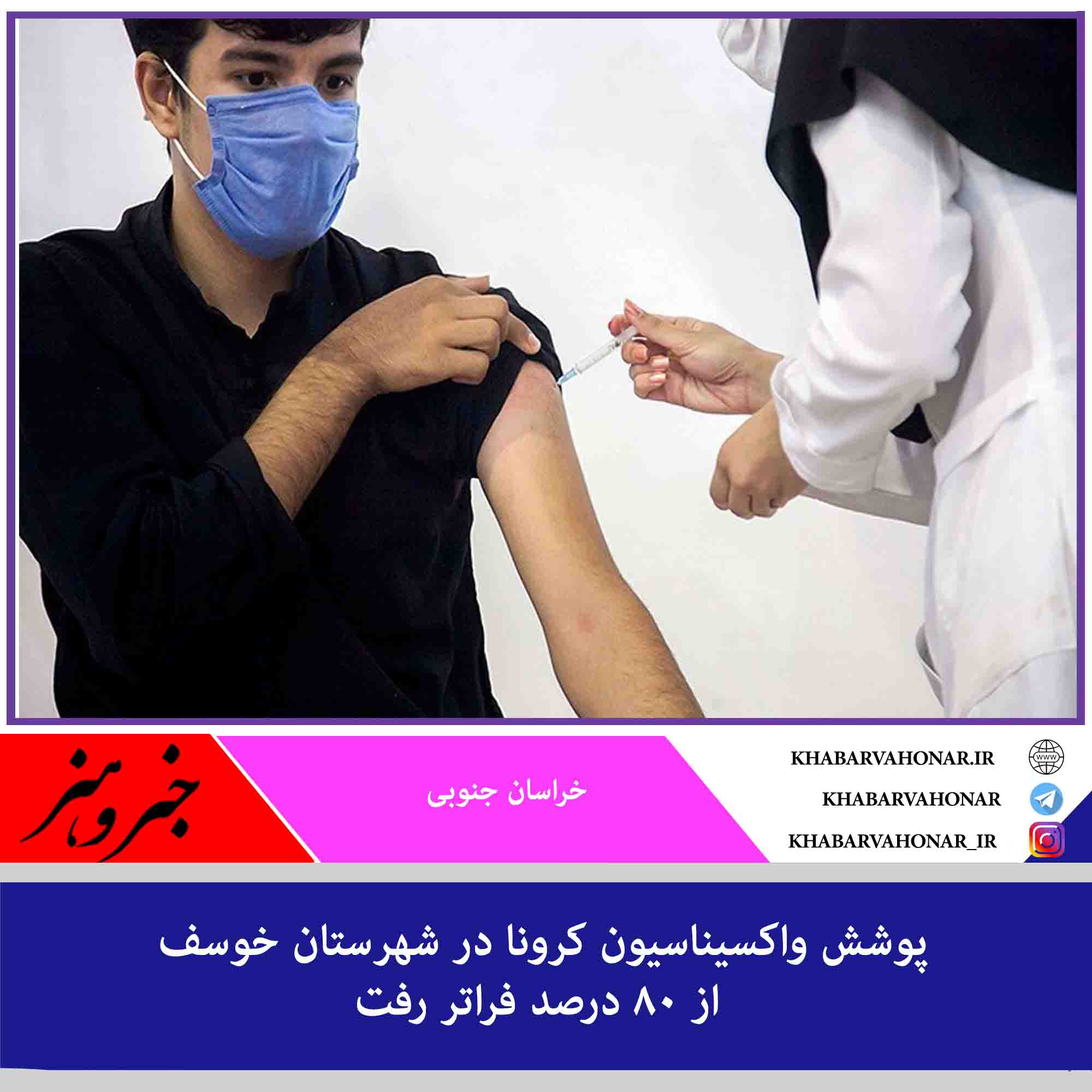 فرماندار خوسف گفت: از شروع برنامه واکسیناسیون در این شهرستان تاکنون بیش از ۱۴ هزار و ۸۳۴ نفر معادل ۸۰.۲ درصد افراد بالای ۱۲ سال دُز اول واکسن کرونا را دریافت کردهاند.