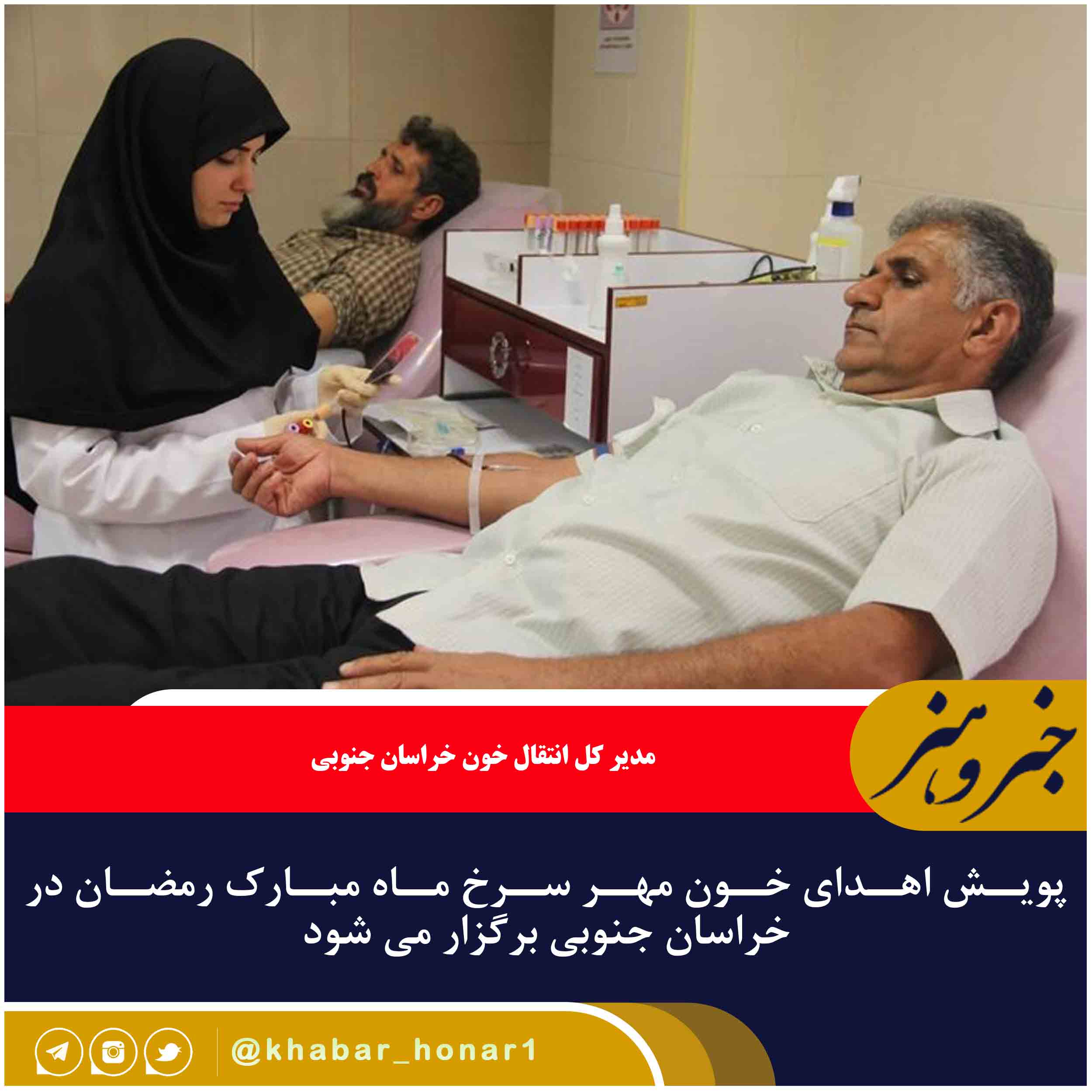مدیر کل انتقال خون خراسان جنوبی گفت: ششمین دوره پویش اهدای خون مهر سرخ ماه مبارک رمضان در خراسان جنوبی برگزار می شود.