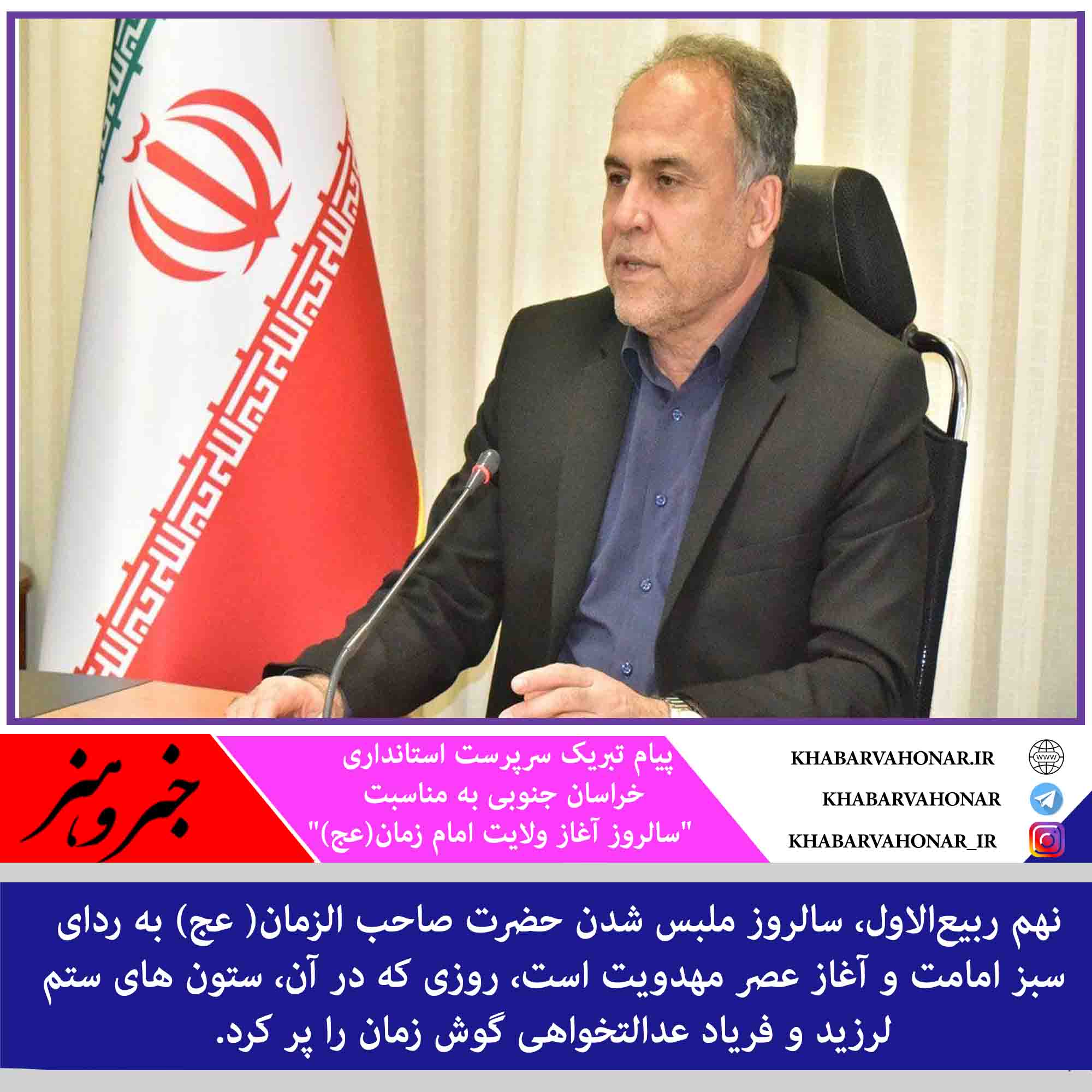 پیام تبریک سرپرست استانداری خراسان جنوبی به مناسبت “سالروز آغاز ولایت امام زمان(عج)”