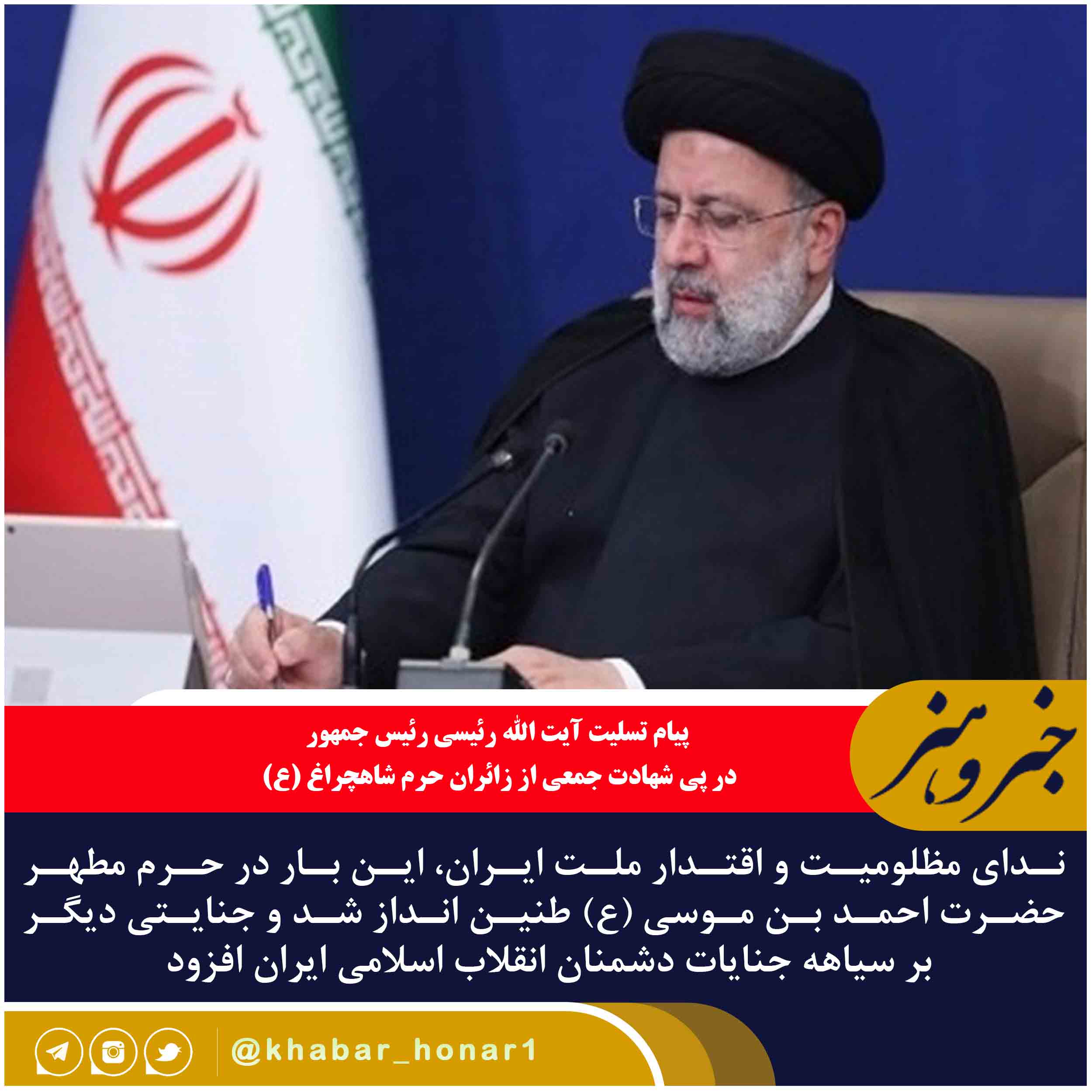 ▪️ اینجانب شهادت و زخمی شدن جمعی از زائران حرم مطهر حضرت احمدبن موسی (ع) در این حمله تروریستی را به خانواده های این عزیران و همه مردم ایران تسلیت عرض میکنم.
