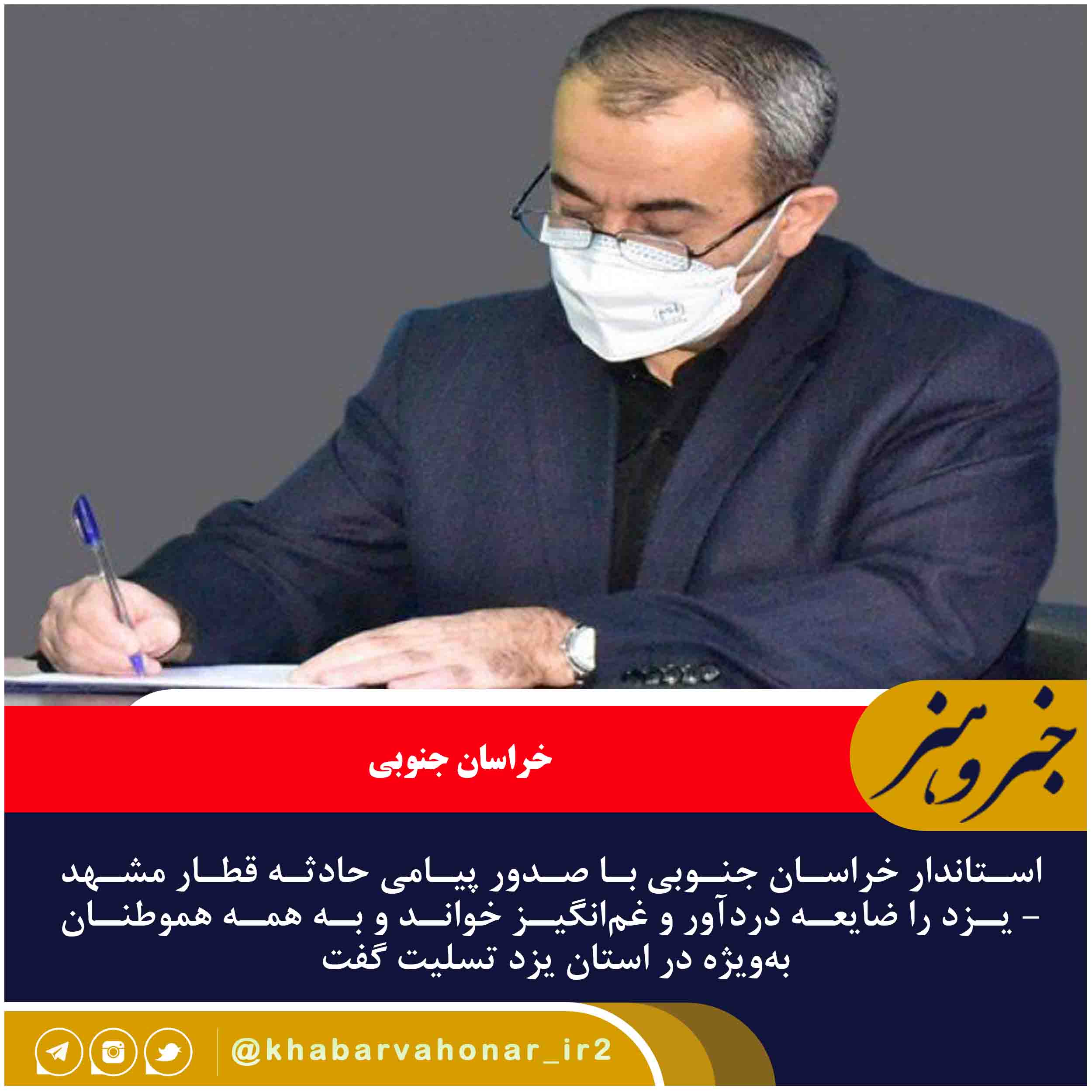 استاندار خراسان جنوبی با صدور پیامی حادثه قطار مشهد – یزد را ضایعه دردآور و غمانگیز خواند و به همه هموطنان بهویژه در استان یزد تسلیت گفت.