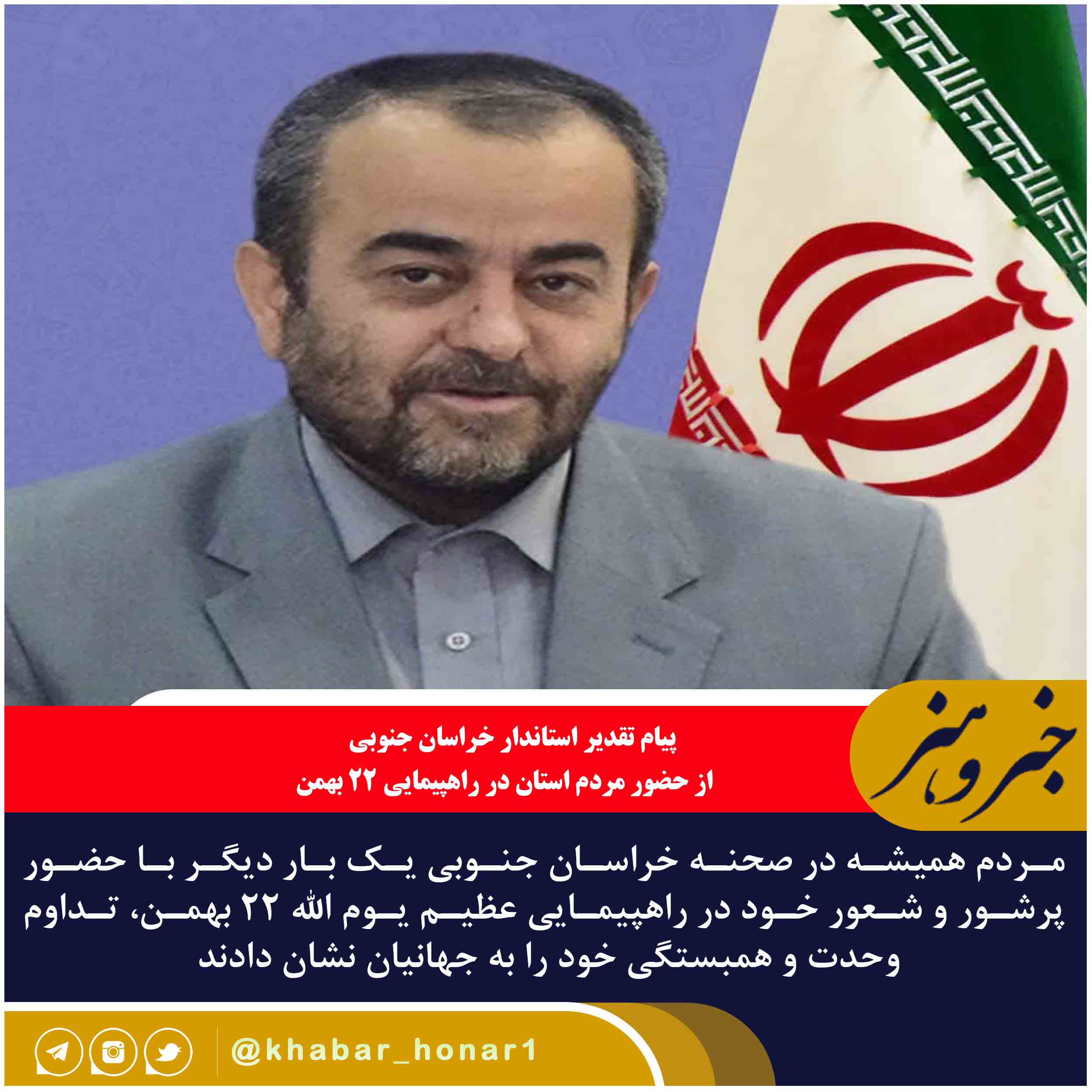 پیام تقدیر استاندار خراسان جنوبی از حضور مردم استان در راهپیمایی ۲۲ بهمن
