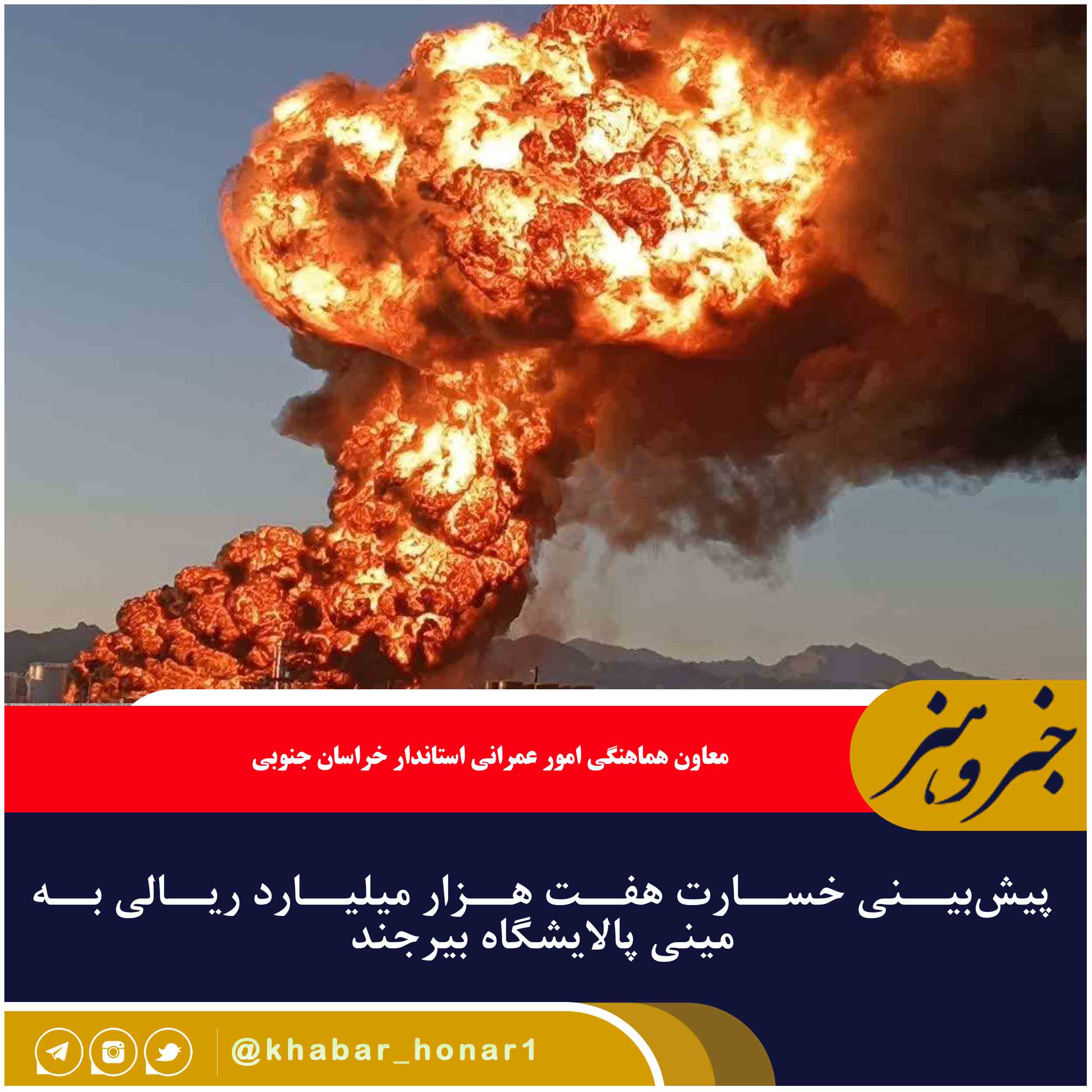 معاون هماهنگی امور عمرانی استاندار خراسان جنوبی گفت: پیش بینی میشود بر اثر حریق مخازن مینی پالایشگاه در منطقه ویژه اقتصادی بیرجند بیش از هفت هزار میلیارد ریال به این واحد خسارت وارد شده باشد.