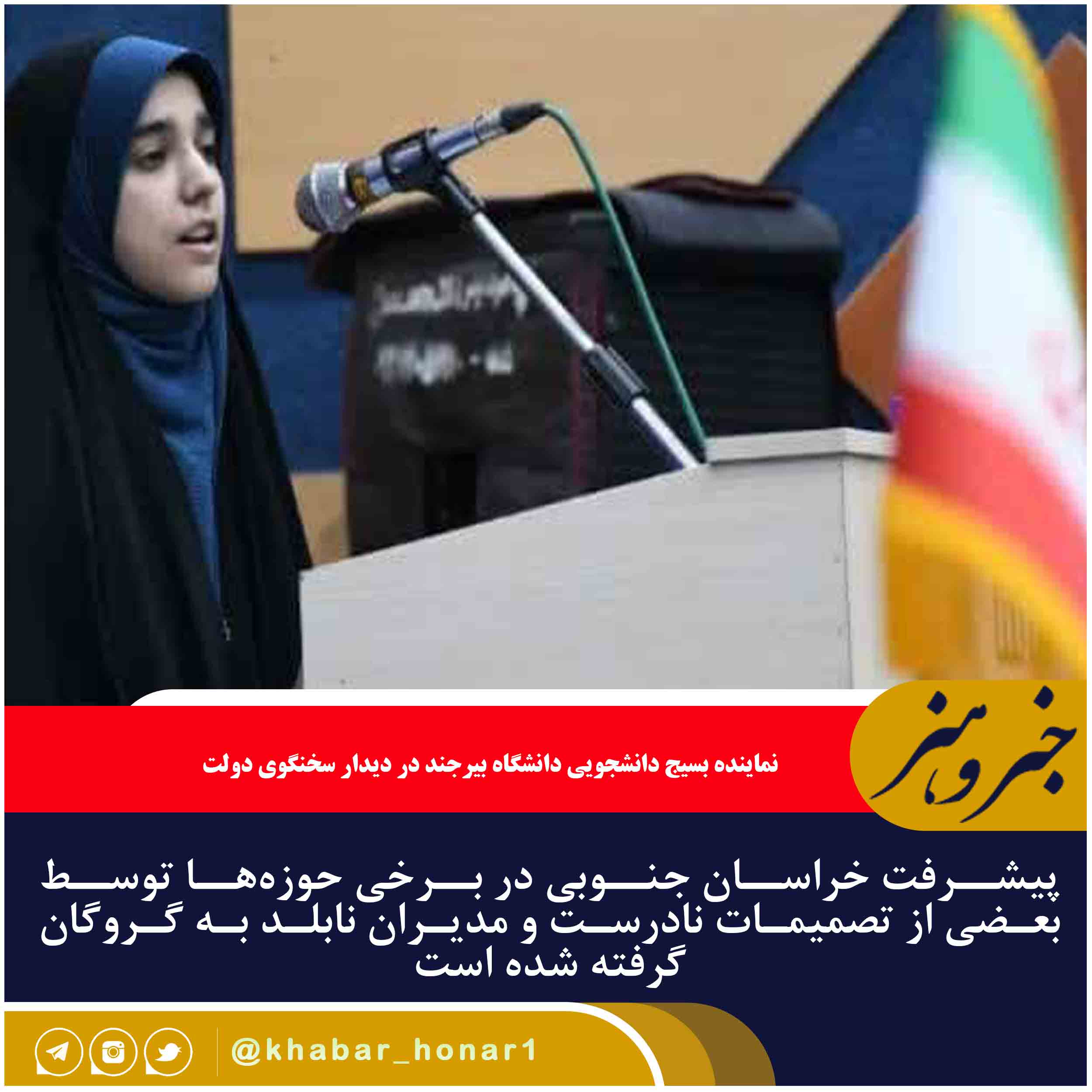 نماینده بسیج دانشجویی دانشگاه بیرجند در دیدار سخنگوی دولت ، بیان کرد: «کمبود صنایع تبدیلی در استان بلای دیگری بوده که موجب میشود خامفروشی سرمایههای این منطقه را هر لحظه از استان خارج کرده و فرصت ایجاد اشتغال و پویایی اقتصاد را از این استان مستعد و محروم بگیرد».