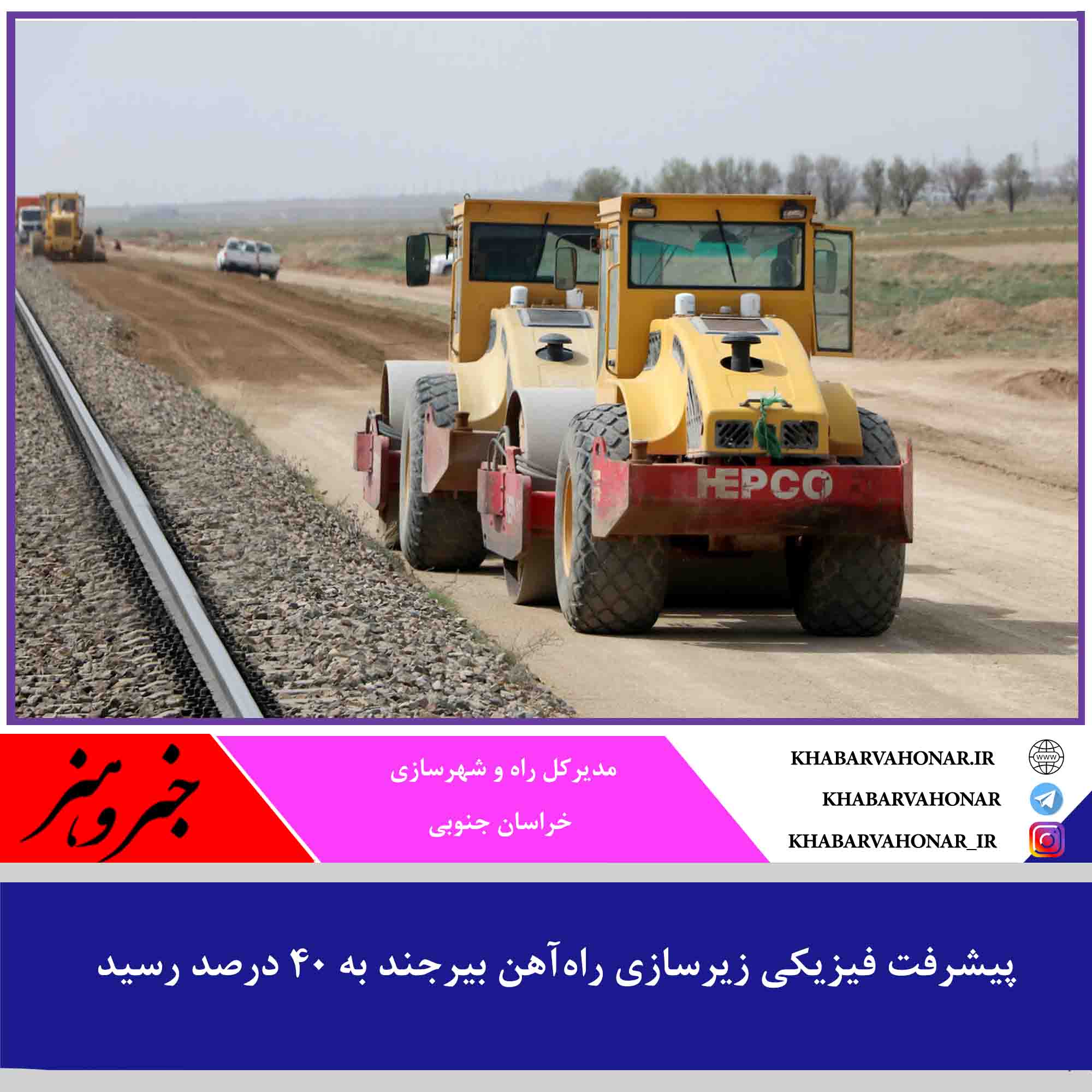 مدیرکل راه و شهرسازی خراسان جنوبی گفت: پیشرفت فیزیکی قطعه ۱۶ راهآهن بیرجند – یونسی از خراسان جنوبی به سمت خراسان رضوی در بخش زیرسازی به ۴۰ درصد رسیده است.