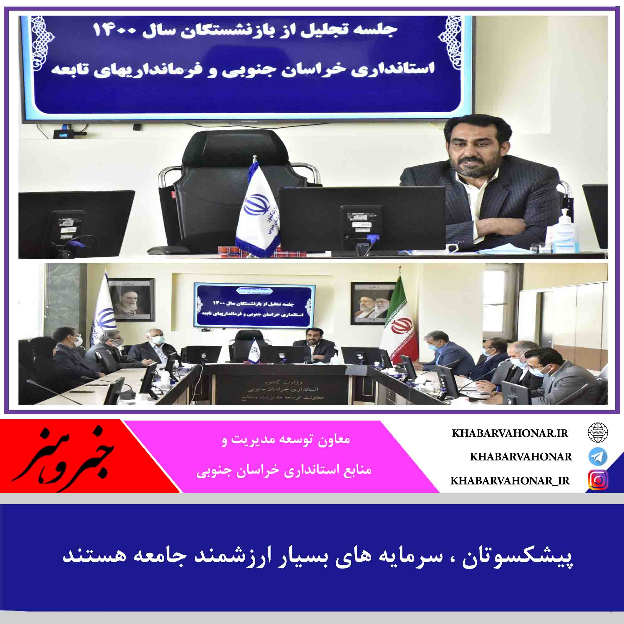 ?معاون توسعه مدیریت و منابع استانداری خراسان جنوبی گفت: پیشکسوتان، سرمایه های بسیار ارزشمند جامعه هستند.