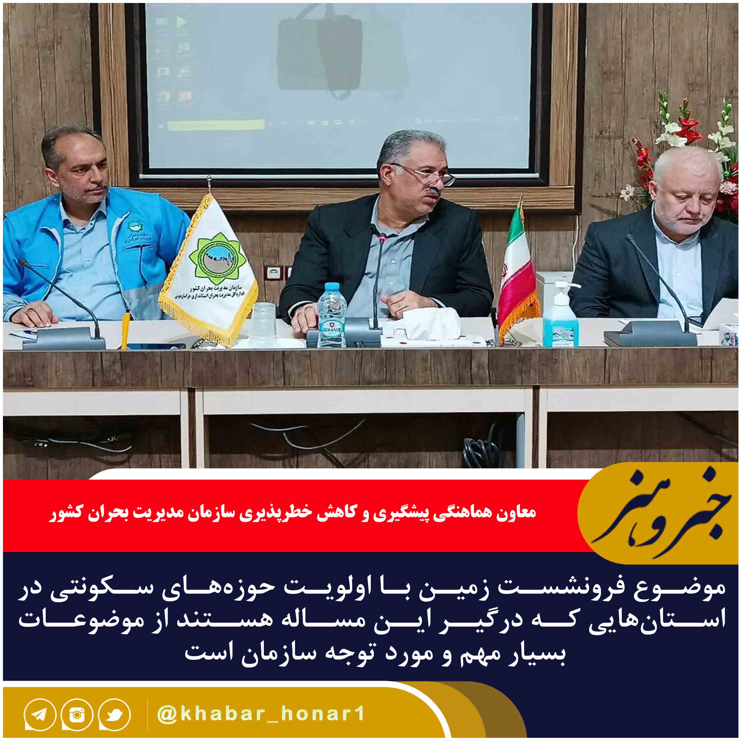 معاون هماهنگی پیشگیری و کاهش خطرپذیری سازمان مدیریت بحران کشور گفت: موضوع فرونشست زمین با اولویت حوزههای سکونتی در استانهایی که درگیر این مساله هستند از موضوعات بسیار مهم و مورد توجه سازمان است.