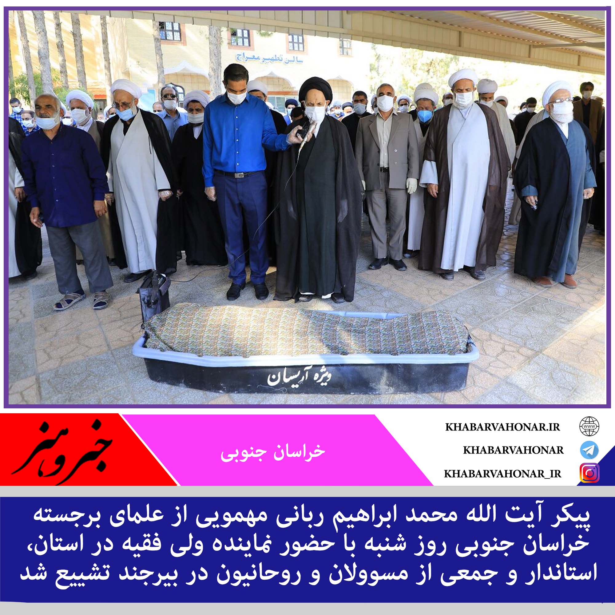 پیکر آیت الله محمد ابراهیم ربانی مهمویی از علمای برجسته خراسان جنوبی روز شنبه با حضور نماینده ولی فقیه در استان، استاندار و جمعی از مسوولان و روحانیون در بیرجند تشییع و به خاک سپرده شد.