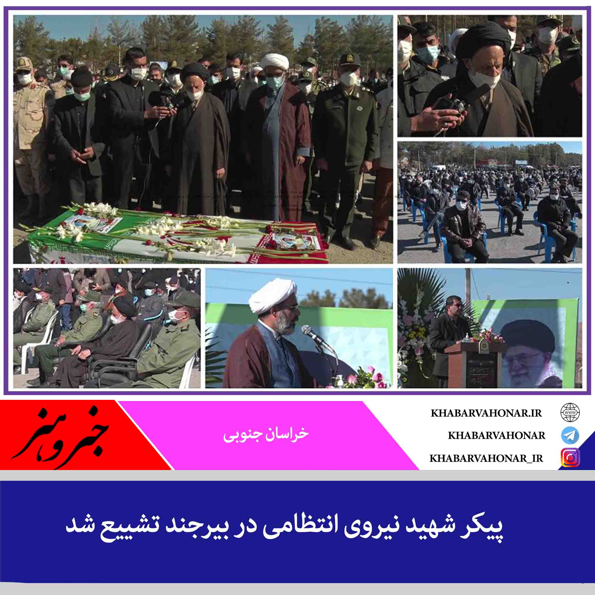 پیکر این شهید مدافع حریم وطن از میدان بهشت متقین (قتلگاه) بیرجند به سمت گلزار شهدای این شهر بر دستان مردم شهیدپرور بیرجند تشییع شد و نماینده ولی فقیه در خراسان جنوبی بر پیکر این شهید والامقام نماز اقامه کرد.