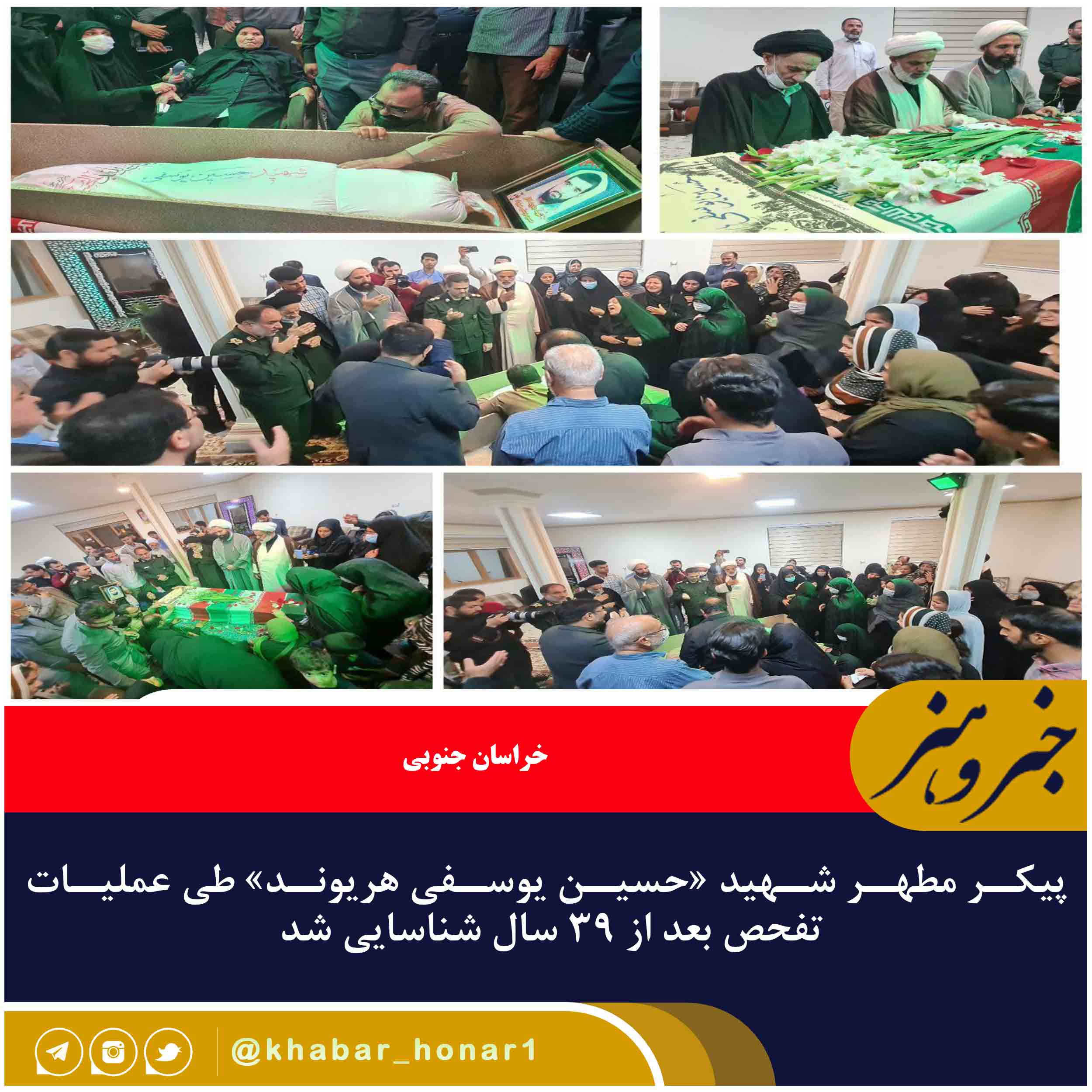 حجت الاسلام محمدتقی عزیزی مدیرکل بنیاد شهید و امور ایثارگران خراسان جنوبی اظهار داشت: پیکر مطهر شهید «حسین یوسفی هریوند» طی عملیات تفحص بعد از ۳۹ سال شناسایی شد.