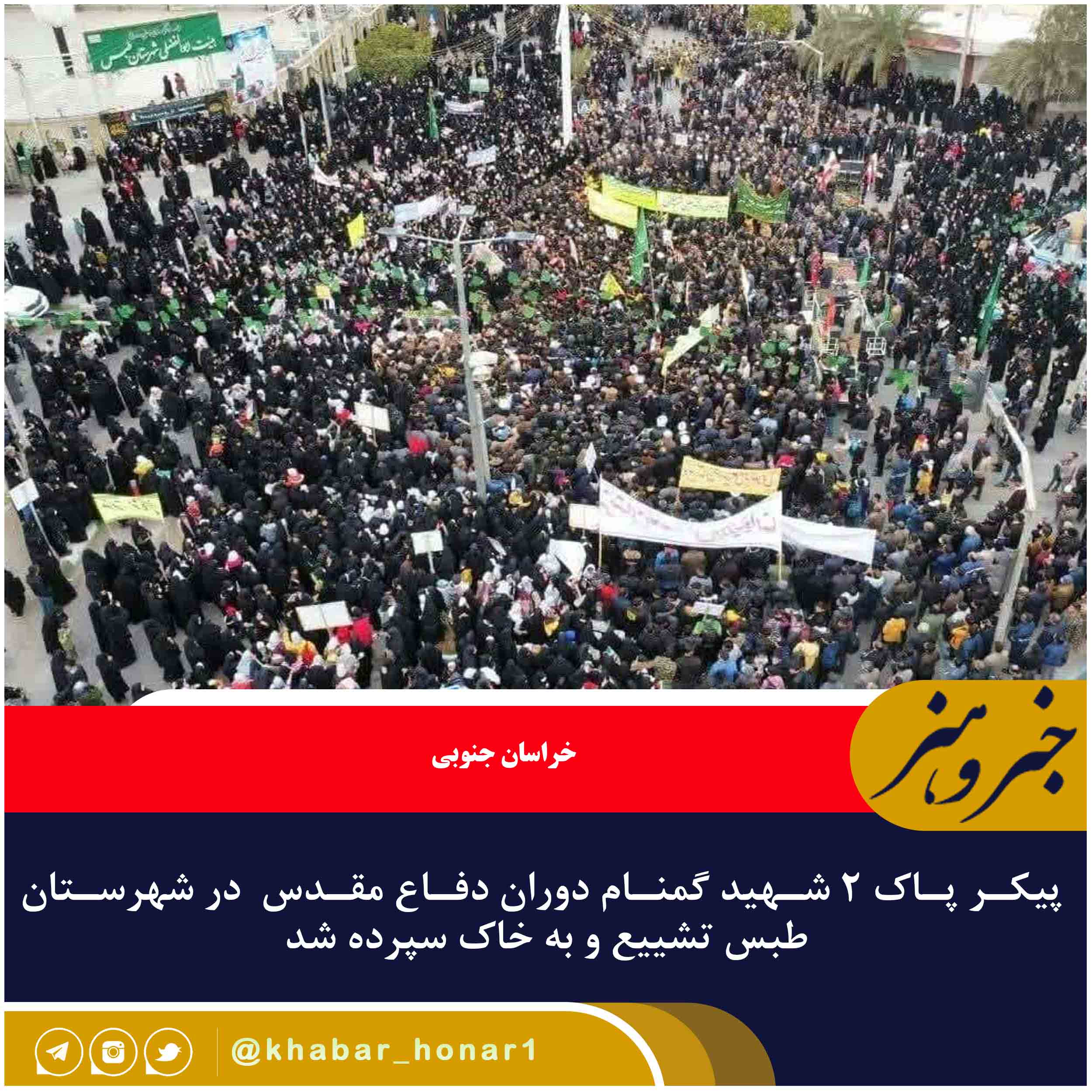 مدیرکل حفظ آثار و نشر ارزشهای دفاع مقدس خراسان جنوبی گفت: پیکر مطهر ۲ شهید گمنام پس از تشییع باشکوه در شهرستان طبس در ۲ مکان به خاک سپرده شدند.