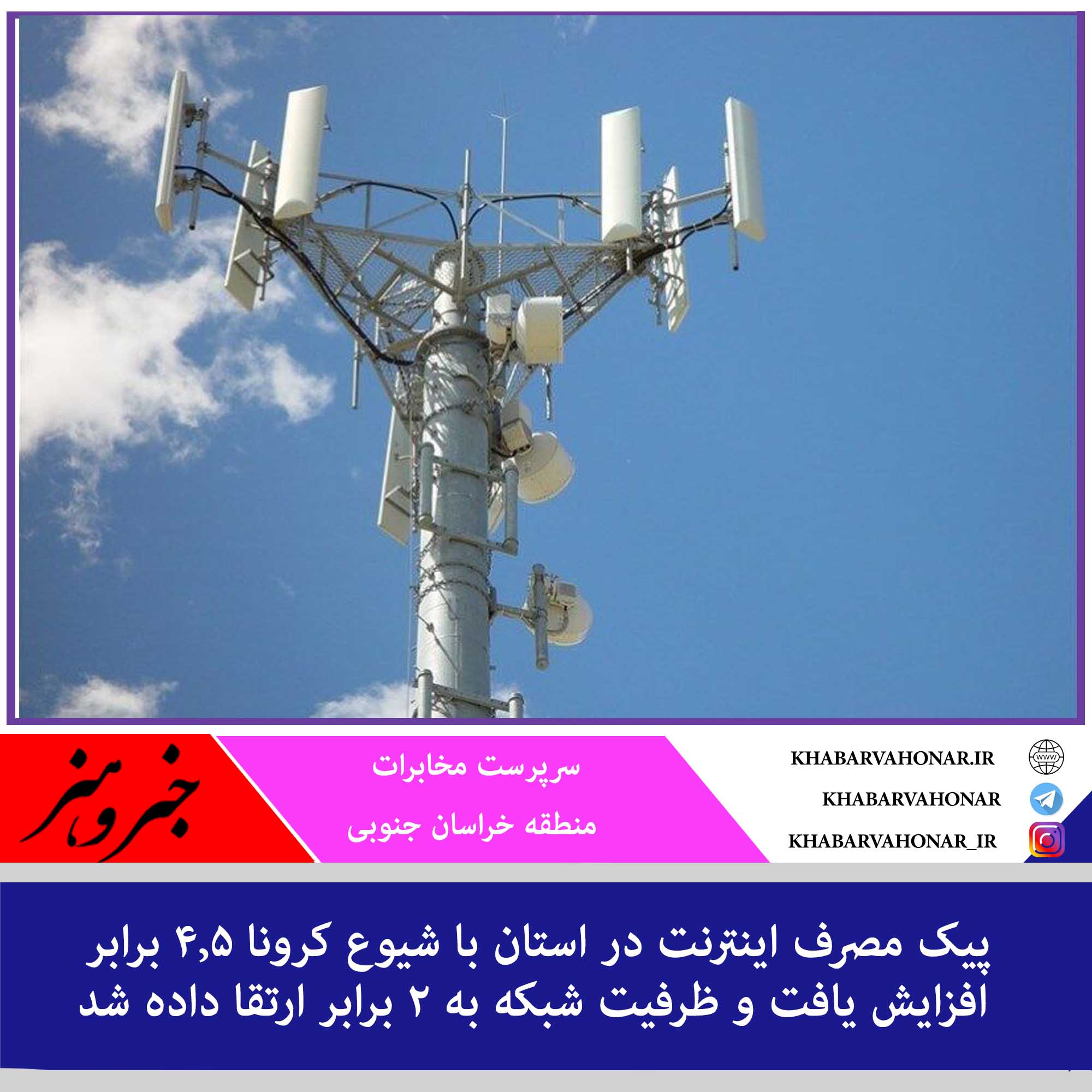 سرپرست مخابرات منطقه خراسان جنوبی گفت: پیک مصرف اینترنت در استان با شیوع کرونا ۴.۵ برابر افزایش یافت و ظرفیت شبکه به ۲ برابر ارتقا داده شد.