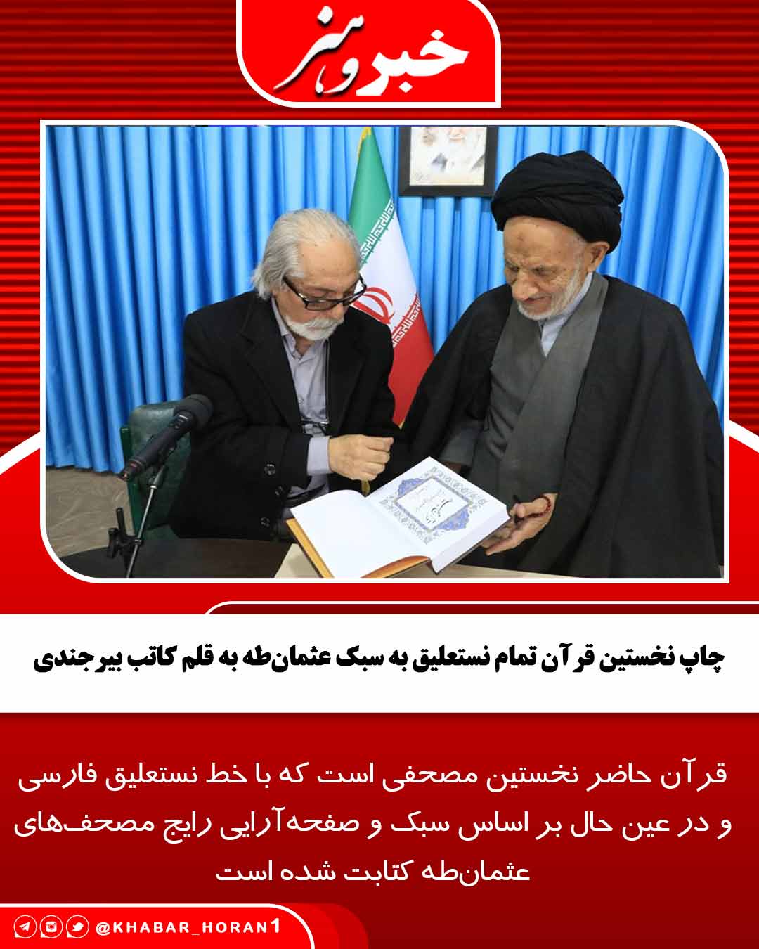 چاپ نخستین قرآن تمام نستعلیق به سبک عثمان‌طه به قلم کاتب بیرجندی