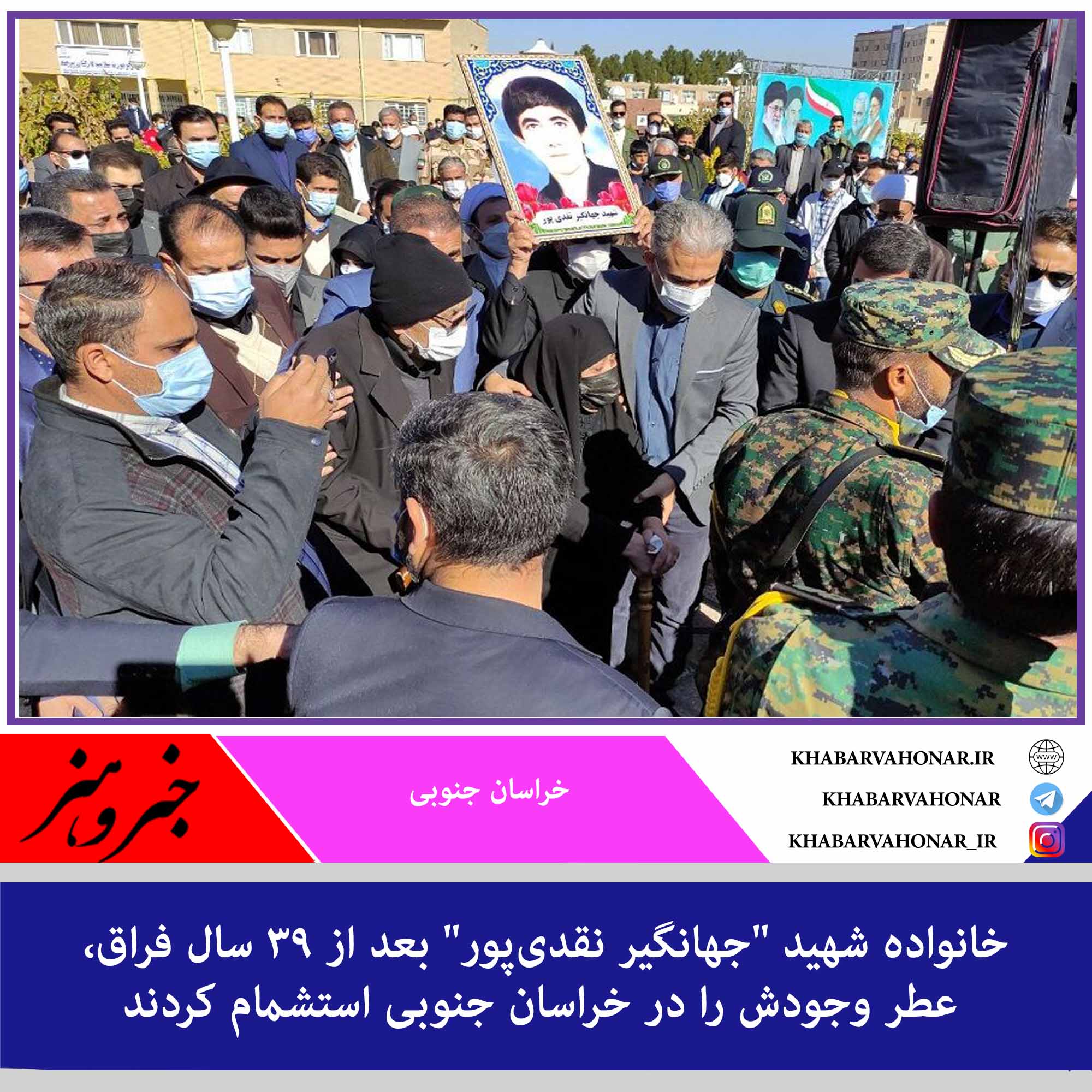 روزی که از خوزستان راهی جبهه شد، ۱۹ ساله بود و امروز خانواده‌ شهید “جهانگیر نقدی‌پور” بعد از ۳۹ سال فراق، عطر وجودش را در خراسان جنوبی استشمام کردند.
