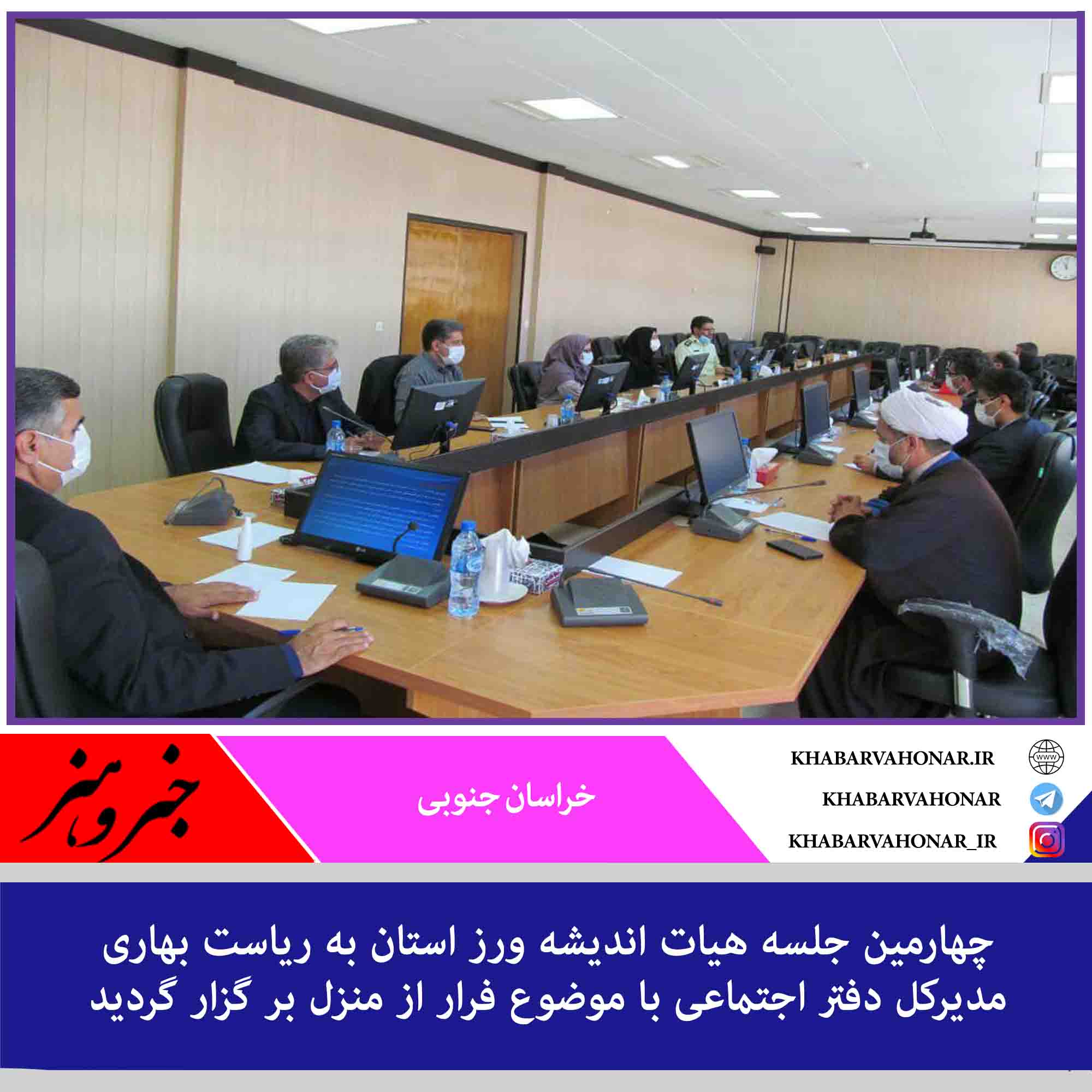 چهارمین جلسه هیات اندیشه ورز استان به ریاست بهاری مدیرکل دفتر اجتماعی با موضوع فرار از منزل بر گزار گردید