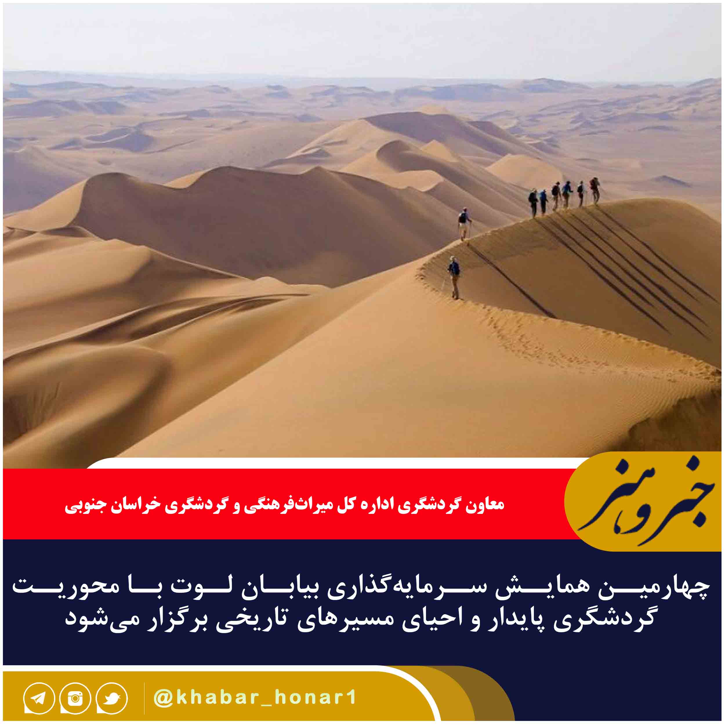 معاون گردشگری اداره کل میراث‌فرهنگی و گردشگری خراسان جنوبی گفت: چهارمین همایش سرمایه‌گذاری بیابان لوت با محوریت گردشگری پایدار و احیای مسیرهای تاریخی برگزار می‌شود تا ضمن جذب سرمایه‌گذاران، طرح‌هایی با حفظ طبیعت و میراث منطقه اجرا شود.