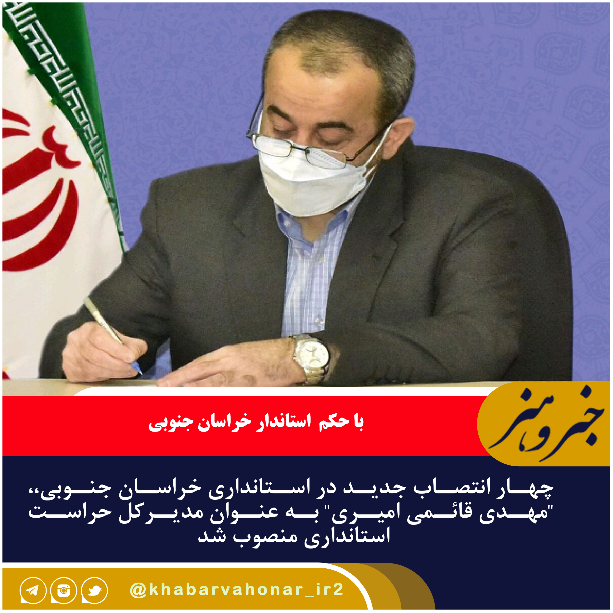 استاندار خراسان جنوبی در احکام جداگانه، مدیرکل حراست، معاون مدیرکل حراست، سرپرست دفتر امور سیاسی، انتخابات و تقسیمات کشوری و معاون مدیرکل دفتر فنی، امور عمرانی و حمل و نقل و ترافیک استانداری را منصوب کرد.