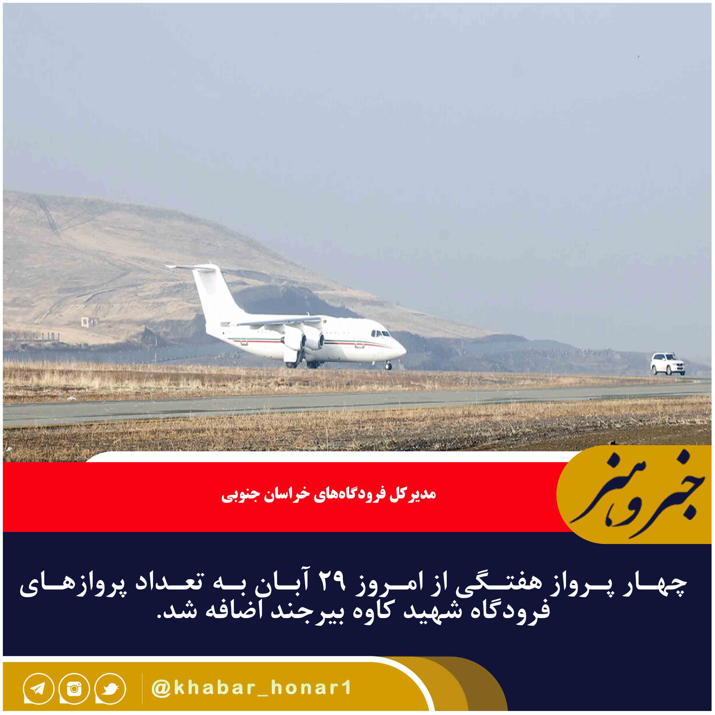 مدیرکل فرودگاههای خراسان جنوبی گفت: پرواز روز پنجشنبه این شرکت هواپیمایی نیز ساعت هفت از فرودگاه مهرآباد انجام میشود و ساعت ۸:۳۰ در فرودگاه بیرجند خواهد بود همچنین ساعت ۹:۱۵ بیرجند را به مقصد تهران ترک میکند و در صورت استقبال مسافران شاهد تداوم و افزایش پروازهای این ایرلاین در خراسان جنوبی خواهیم بود.