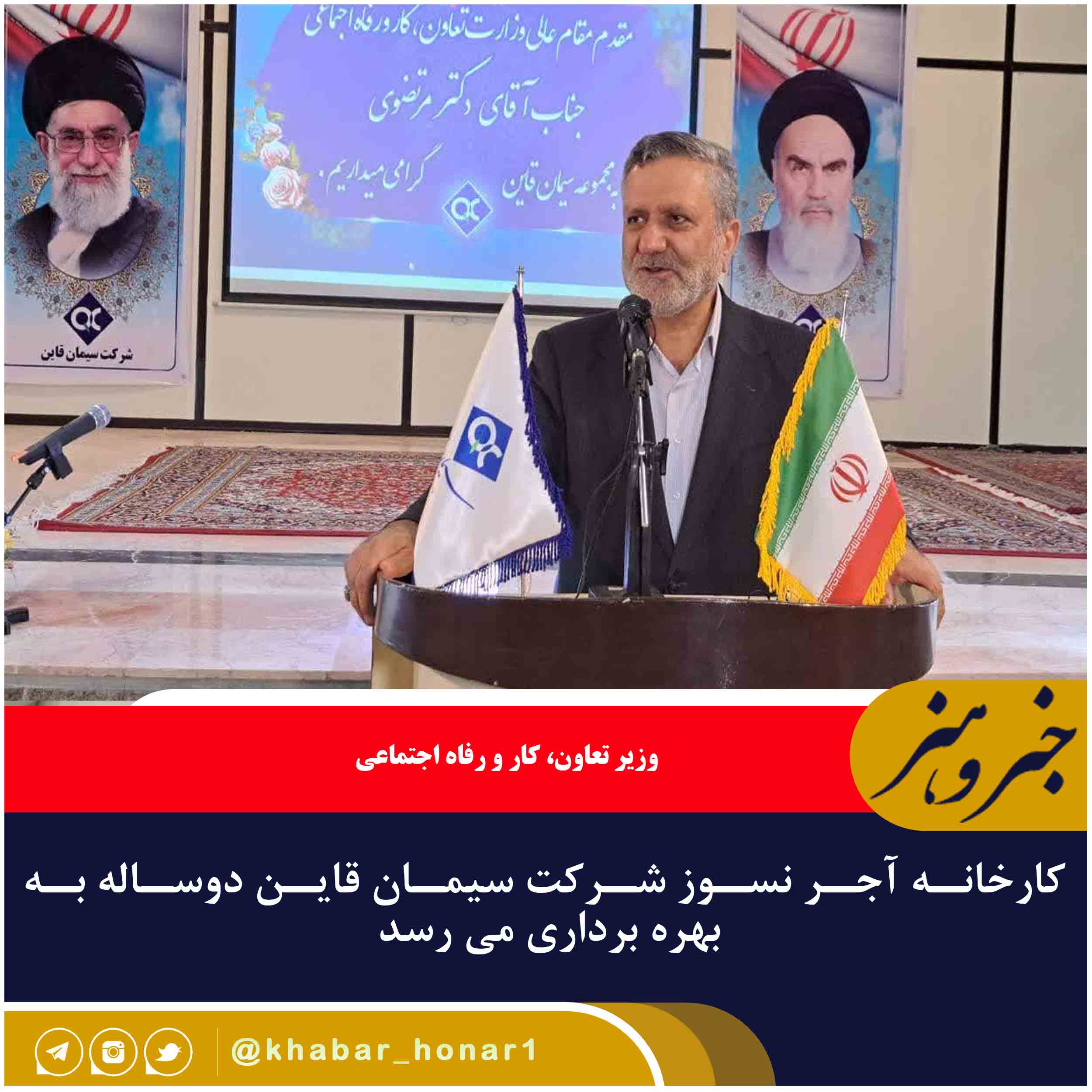 ?وزیر تعاون، کار و رفاه اجتماعی با بیان اینکه طرح فولاد قاینات و باز چرخانی آب های نامتعارف یک کارستان در استان است، افزود: امید است ساخت کارخانه آجرنسوز در توسعه متوازن و تولید اشتغال در منطقه مؤثر باشد.