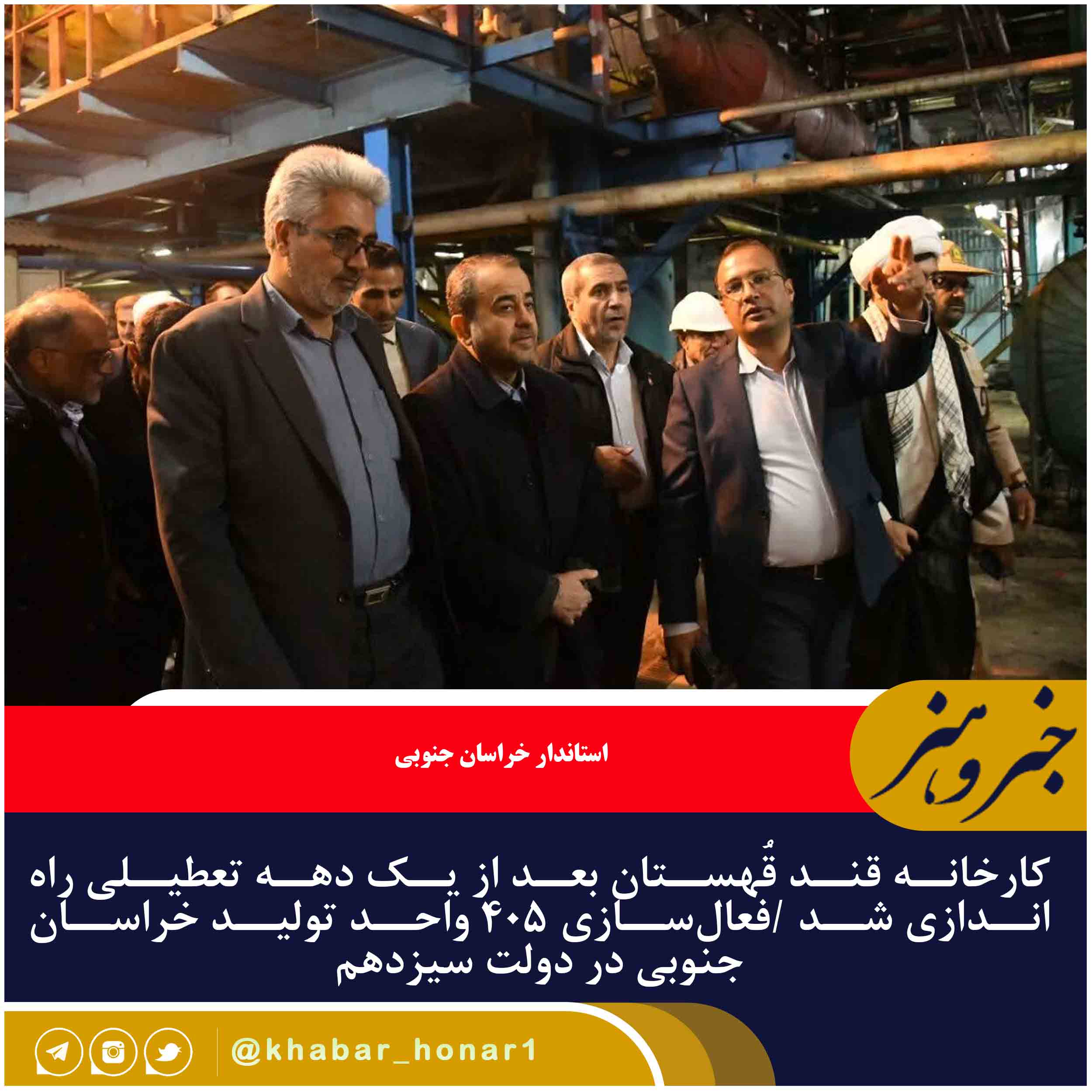 کارخانه قند قُهستان بعد از یک دهه تعطیلی راه‌اندازی شد /فعال‌سازی ۴۰۵ واحد تولید خراسان جنوبی در دولت سیزدهم