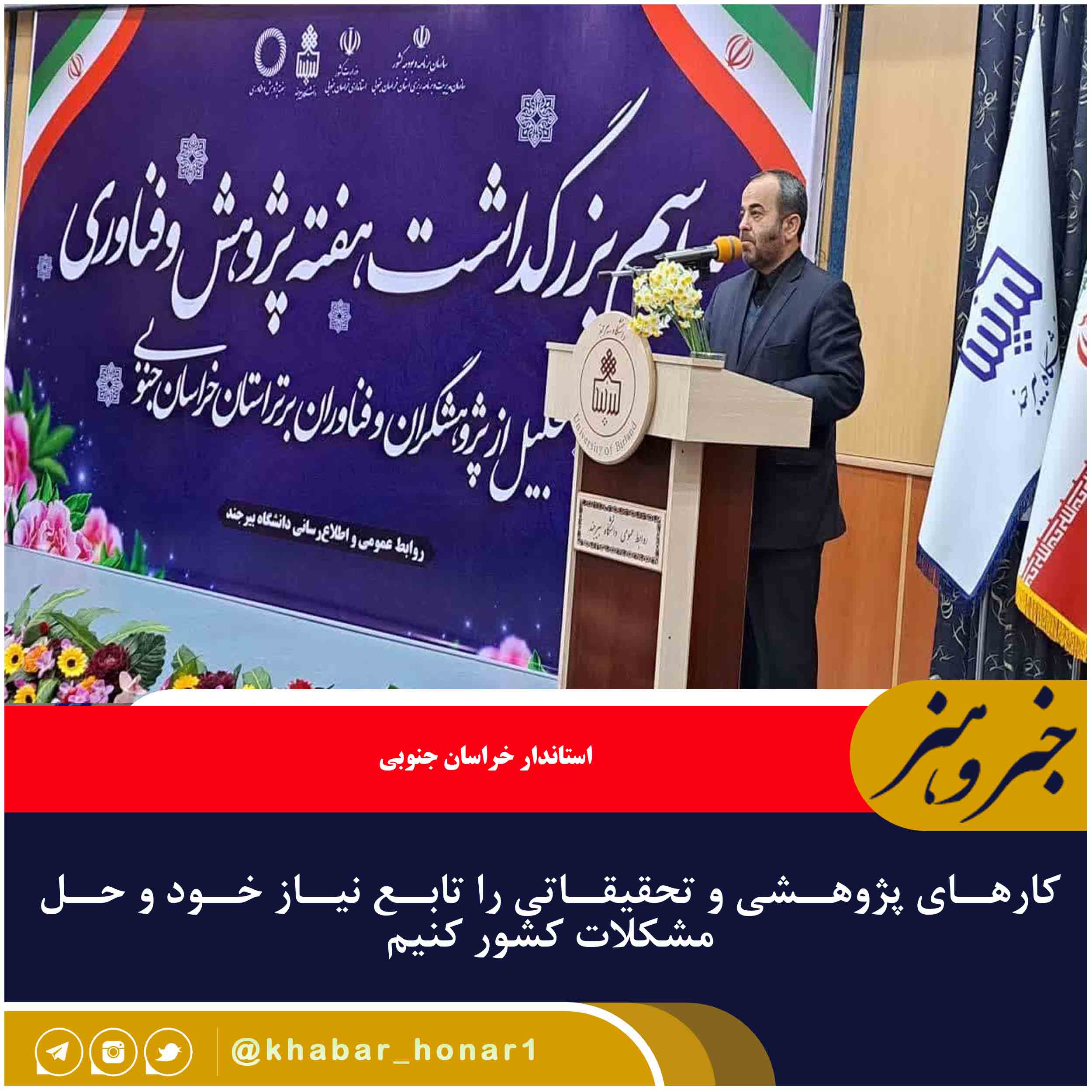 ?استاندار خراسان جنوبی تأکید کرد: کارهای پژوهشی و تحقیقاتی را تابع نیاز خود و حل مشکلات کشور کنیم.