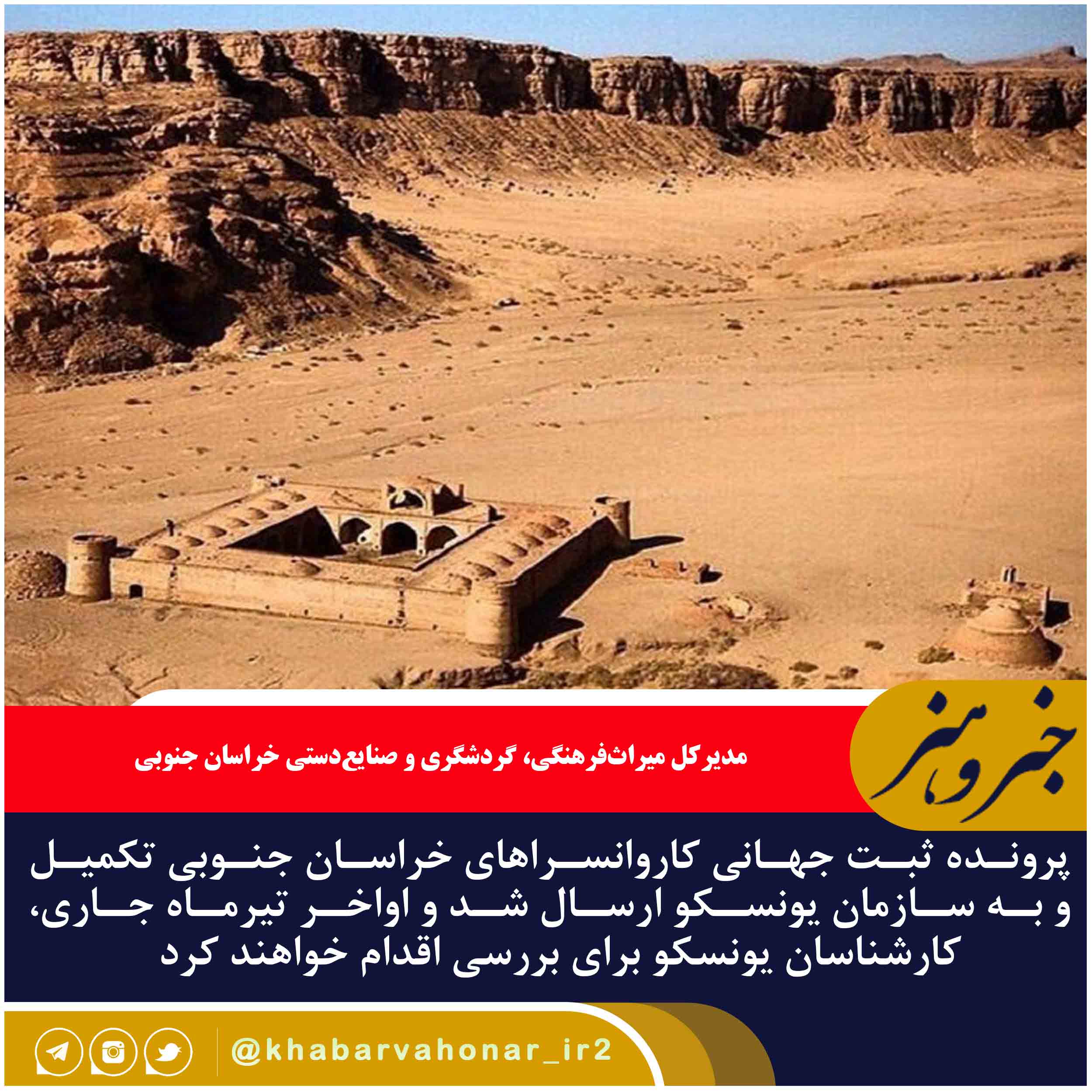 مدیرکل میراثفرهنگی، گردشگری و صنایعدستی خراسان جنوبی گفت: پرونده ثبت جهانی کاروانسراهای خراسان جنوبی تکمیل و به سازمان یونسکو ارسال شد و اواخر تیرماه جاری، کارشناسان یونسکو برای بررسی اقدام خواهند کرد.