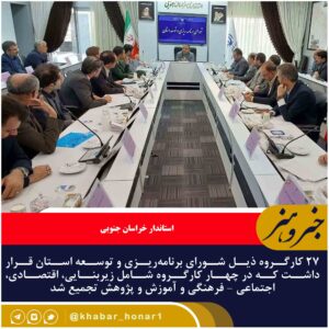 استاندار خراسان جنوبی گفت: ۲۷ کارگروه ذیل شورای برنامهریزی و توسعه استان قرار داشت که در چهار کارگروه شامل زیربنایی، اقتصادی، اجتماعی – فرهنگی و آموزش و پژوهش به ریاست استاندار تجمیع شده است.