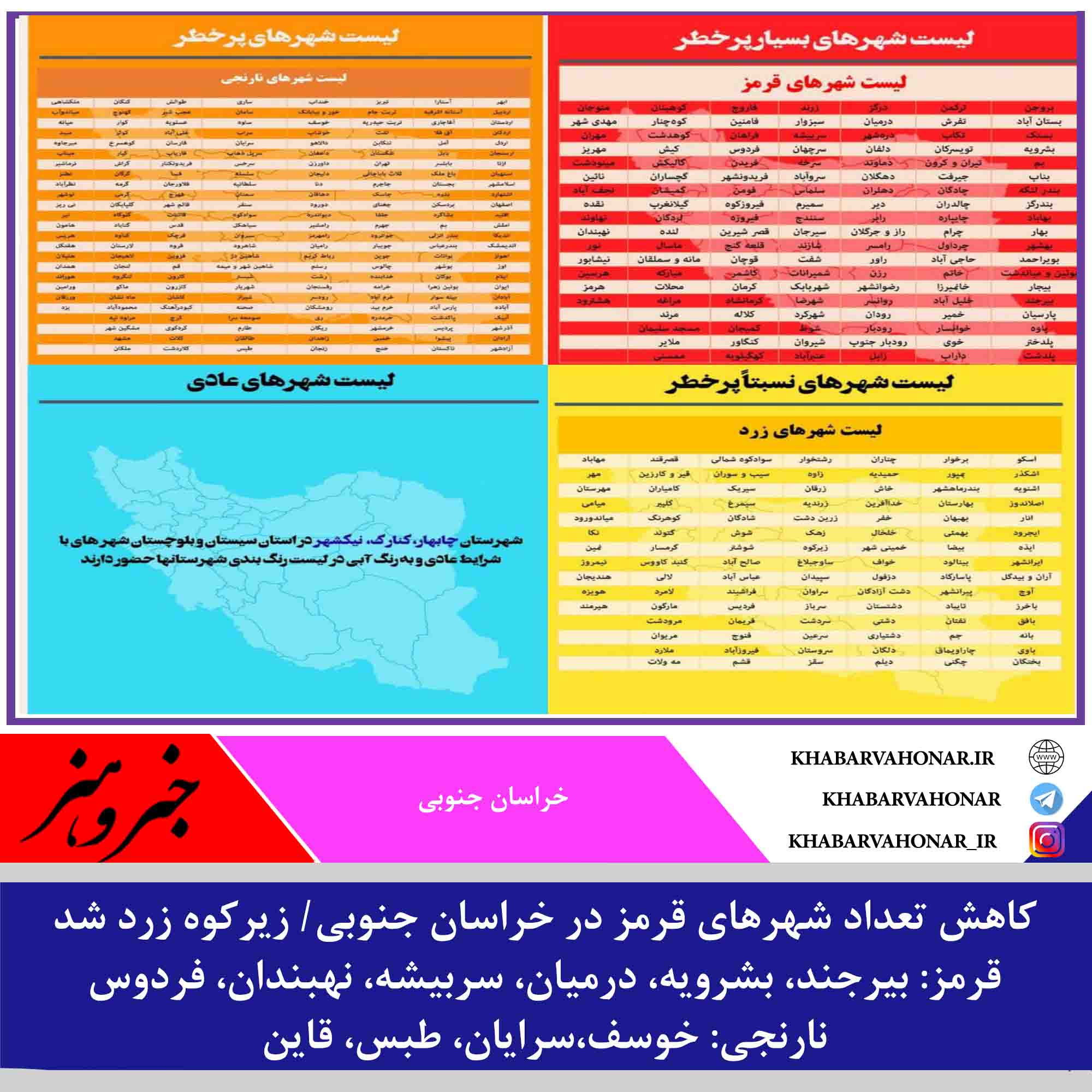 ?قرمز: بیرجند، بشرویه، درمیان، سربیشه، نهبندان، فردوس