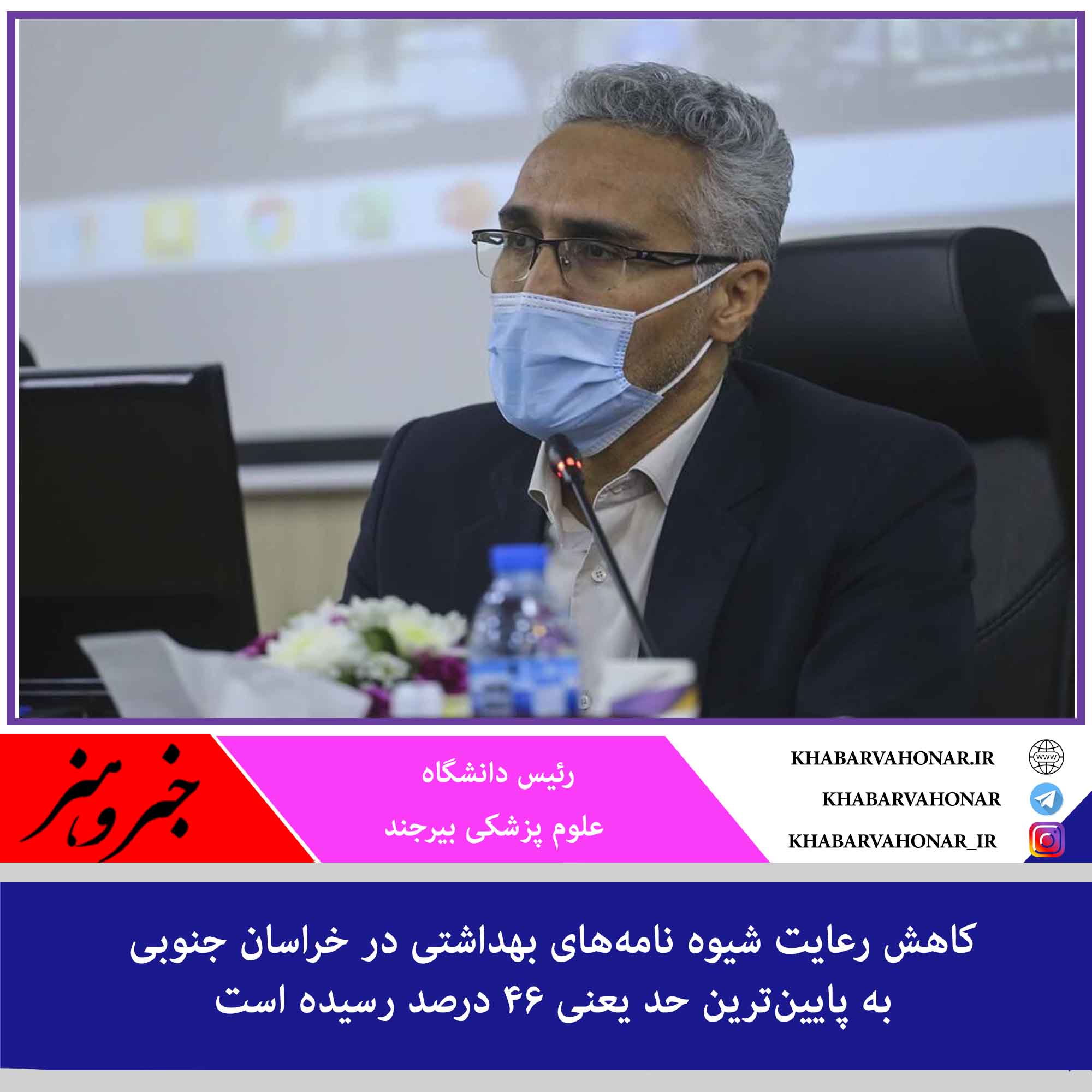 رئیس دانشگاه علوم پزشکی بیرجند گفت: میزان رعایت شیوه نامههای بهداشتی در استان به پایینترین حد یعنی ۴۶ درصد رسیده است.