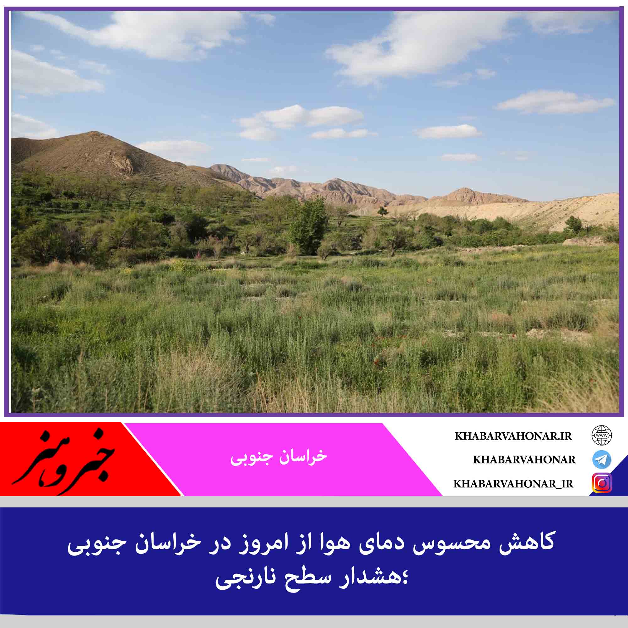 در این هشدار سطح نارنجی (آمادگی) آمده است که با نفوذ تدریجی و استقرار سامانه پرفشار جوی در سطح زمین از امروز ۱۶ مهر ماه، کاهش محسوس و قابل ملاحظه دما (۵ تا ۱۰ درجه سلسیوس) و در برخی مناطق بهویژه شهرستانهای سربیشه، قاینات، درمیان و زیرکوه و احتمالا مناطق مرتفع و کوهستانی بیرجند، خوسف، سرایان و فردوس، یخبندان شبانه پیشبینی میشود.