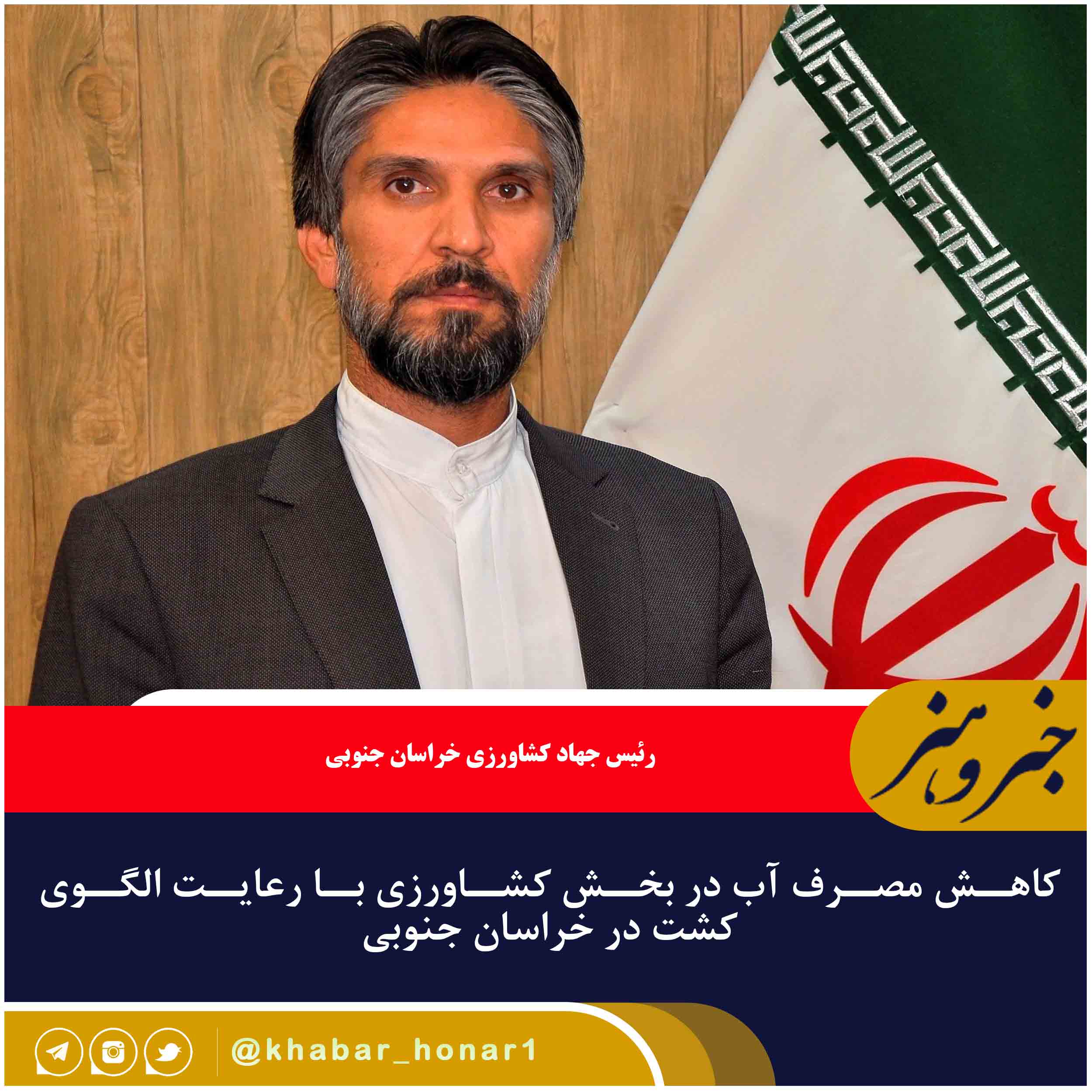 بنا بر گفته رئیس جهاد کشاورزی خراسان جنوبی در سال ۹۲ مصرف آب کشاورزی در خراسان جنوبی یک میلیارد و ۲۶۳ میلیون مترمکعب بود اما اکنون به ۷۸۷ میلیون مترمکعب کاهش یافته که استفاده از سیستمهای نوین آبیاری و تغییر الگوی کشت خراسان جنوبی این موفقیت را رقم زده است.