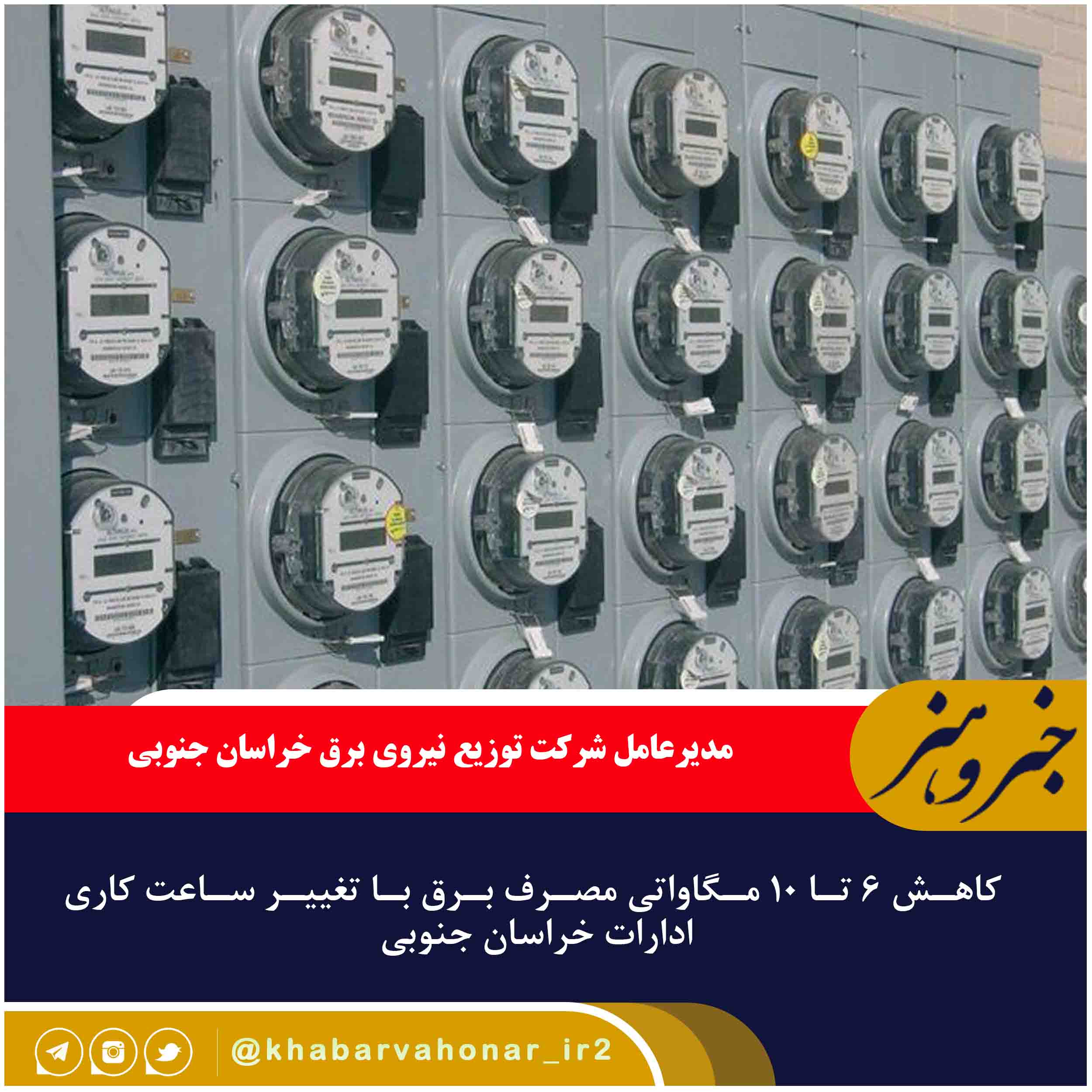 مدیرعامل شرکت توزیع نیروی برق خراسان جنوبی با اشاره به تغییر ساعت کاری ادارات استان از امروز گفت: اجرای این برنامه باعث صرفهجویی ۶ تا ۱۰ مگاوات در مصرف برق استان میشود.
