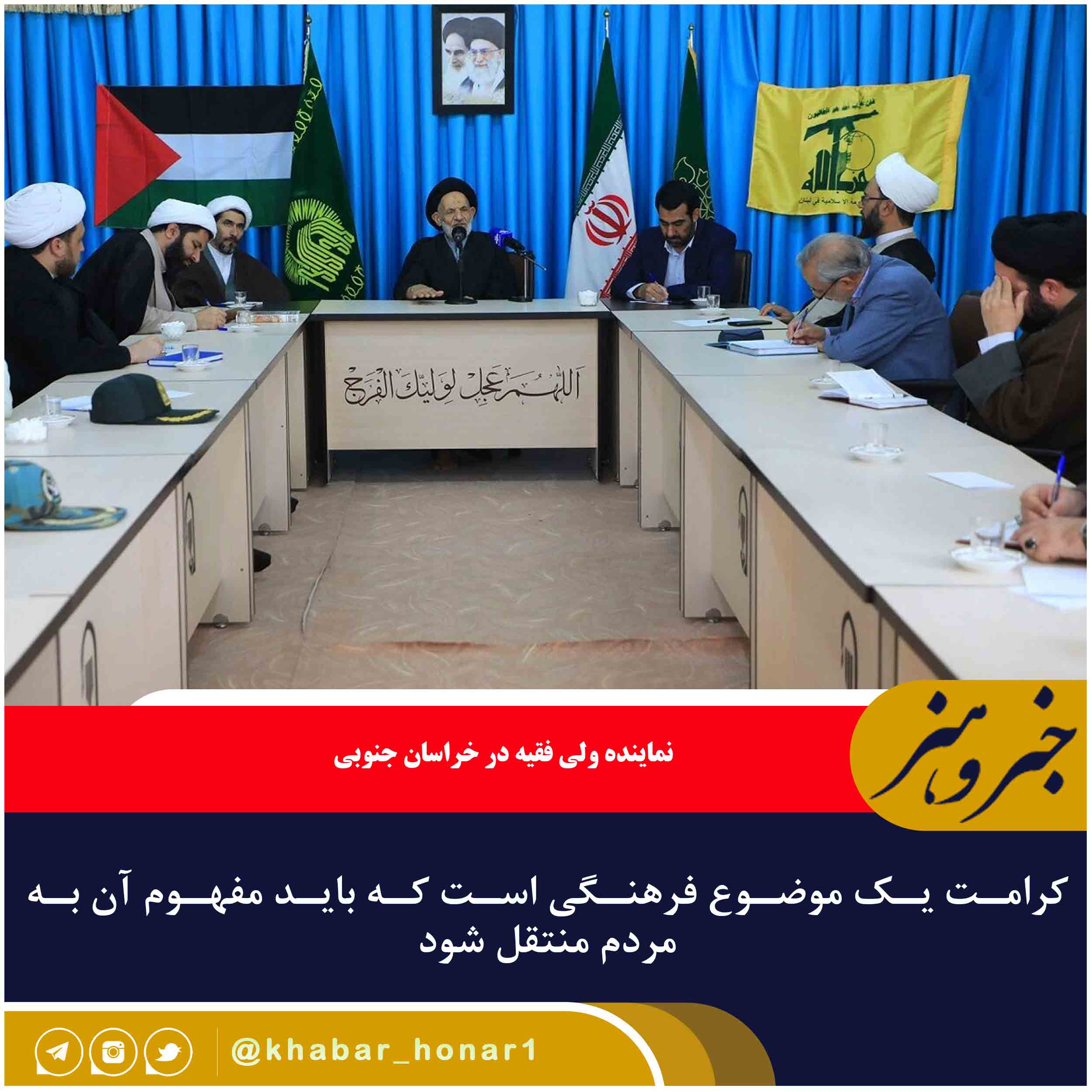 نماینده ولی فقیه در خراسان جنوبی و امام جمعه بیرجند گفت: کرامت یک موضوع فرهنگی است که باید مفهوم آن به مردم منتقل شود و صرفا برگزاری مراسم، شایسته این موضوع نیست.