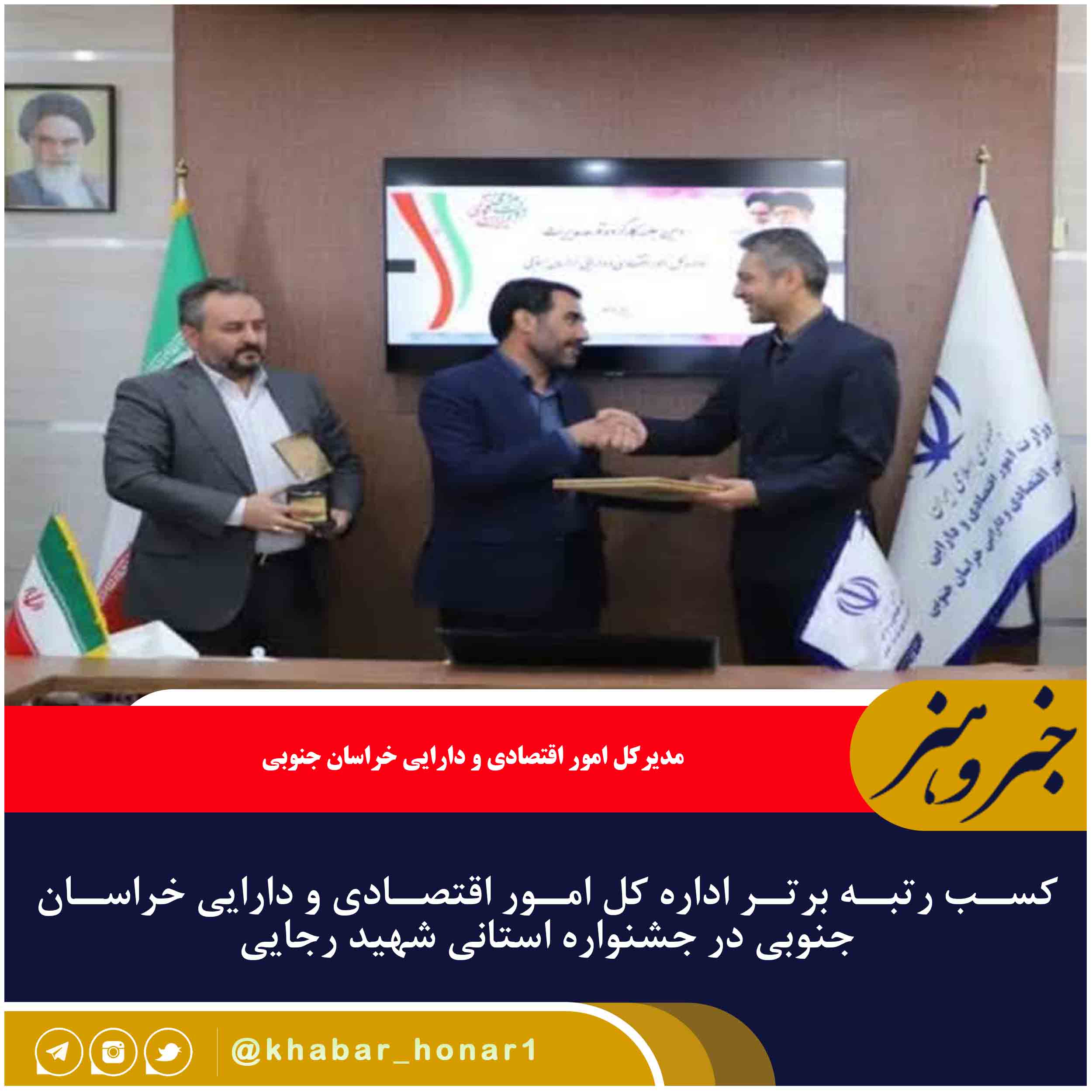 اداره کل امور اقتصادی و دارایی خراسان جنوبی در جشنواره استانی شهید رجایی رتبه برتر در گروه اقتصادی و مالی را کسب کرد.
