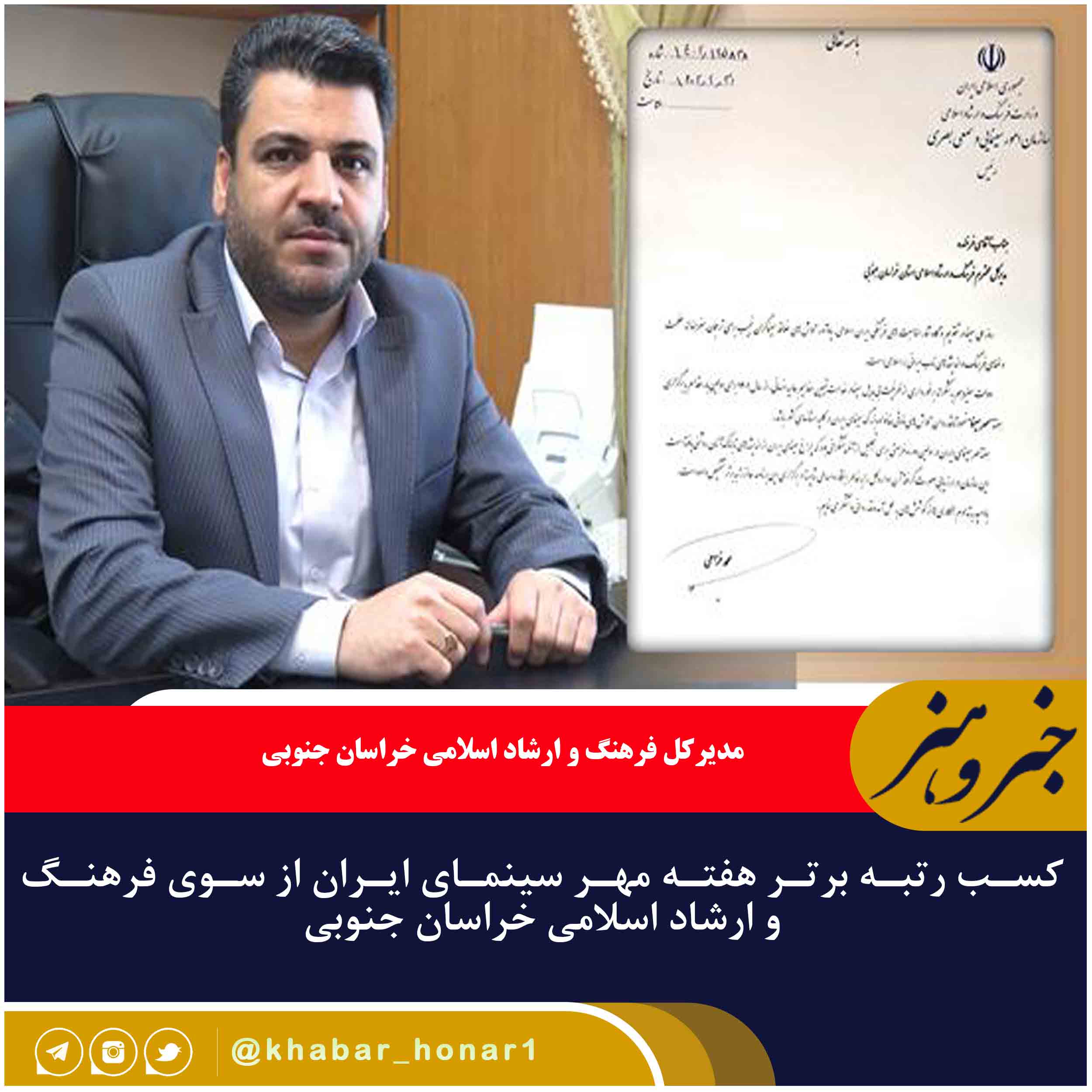 در ارزیابی صورت گرفته هفته مهر سینمای ایران، اداره کل فرهنگ و ارشاد اسلامی خراسان جنوبی به خاطر ابتکار و مساعی شایسته در برگزاری این برنامه حائز رتبه برتر تشخیص داده است.