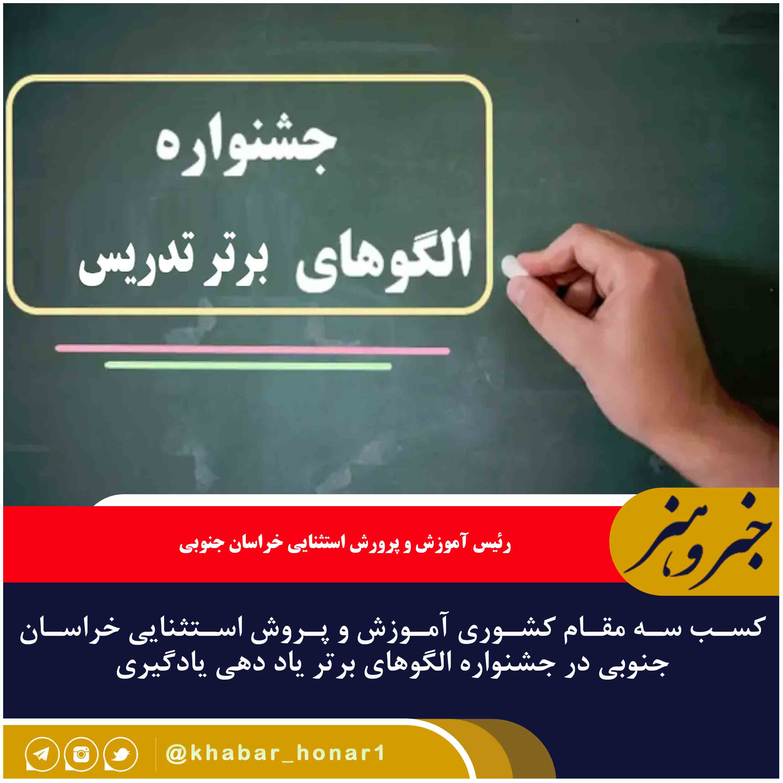 رئیس آموزش و پرورش استثنایی خراسان جنوبی از افتخار آفرینی همکاران در آموزش و پرورش استثنایی استان درمرحله کشوری جشنواره الگوهای برتر یاد دهی یادگیری خبر داد.