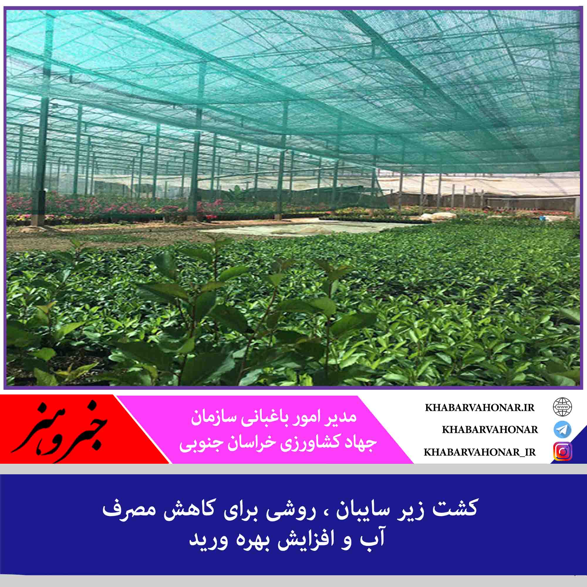 مدیر امور باغبانی سازمان جهاد کشاورزی استان گفت: کشت زیرسایبان دمای محیط رشد محصول را به میزان ۱۰ درجه سانتیگراد و مصرف آب را ۳۰۰۰ مترمکعب در هر هکتار باغ، کاهش می‌دهد.