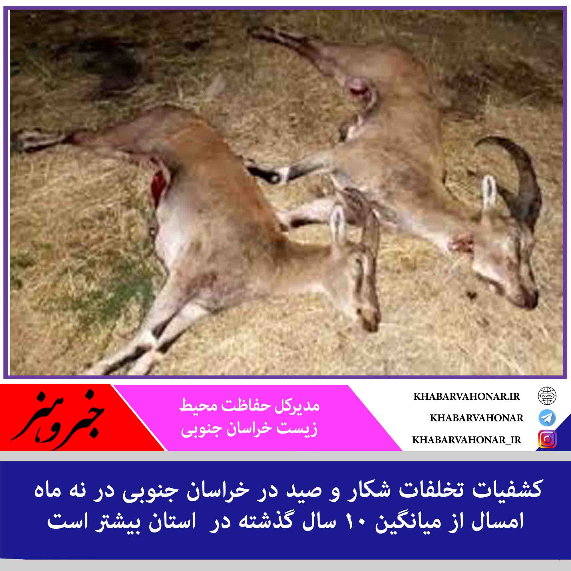 مدیرکل حفاظت محیط زیست خراسان جنوبی گفت: در این مدت ۱۳۱ راس شکار غیر مجاز کشف شد در حالی که میانگین شکار غیر مجاز پستانداران در ۱۰ سال گذشته به ۴۵ راس رسیده بود